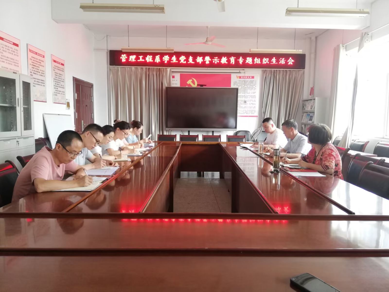 7月4日下午,學生黨支部召開警示教育專題組織生活會,院黨委委員、紀委書記季傳友、系黨總支書記汪思曼到會指導,會議由支部書記陶琪主持。