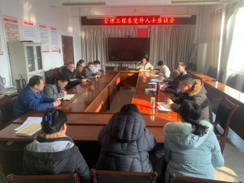 為深入學習貫徹習近平總書記關于做好新時代黨的統一戰線工作的重要思想,做好統戰工作,2023年12月27日下午管理工程系召開黨外人士座談會,管理系黨總支書記汪思曼、系主任岳朝暉及系民主黨派、無黨派教師代表參會。