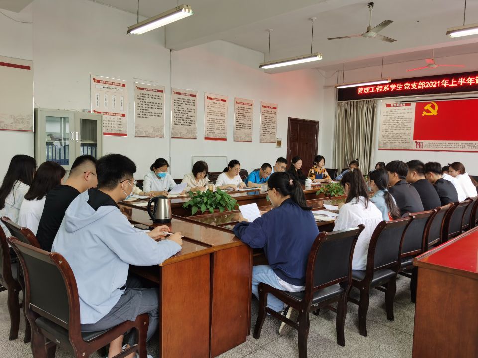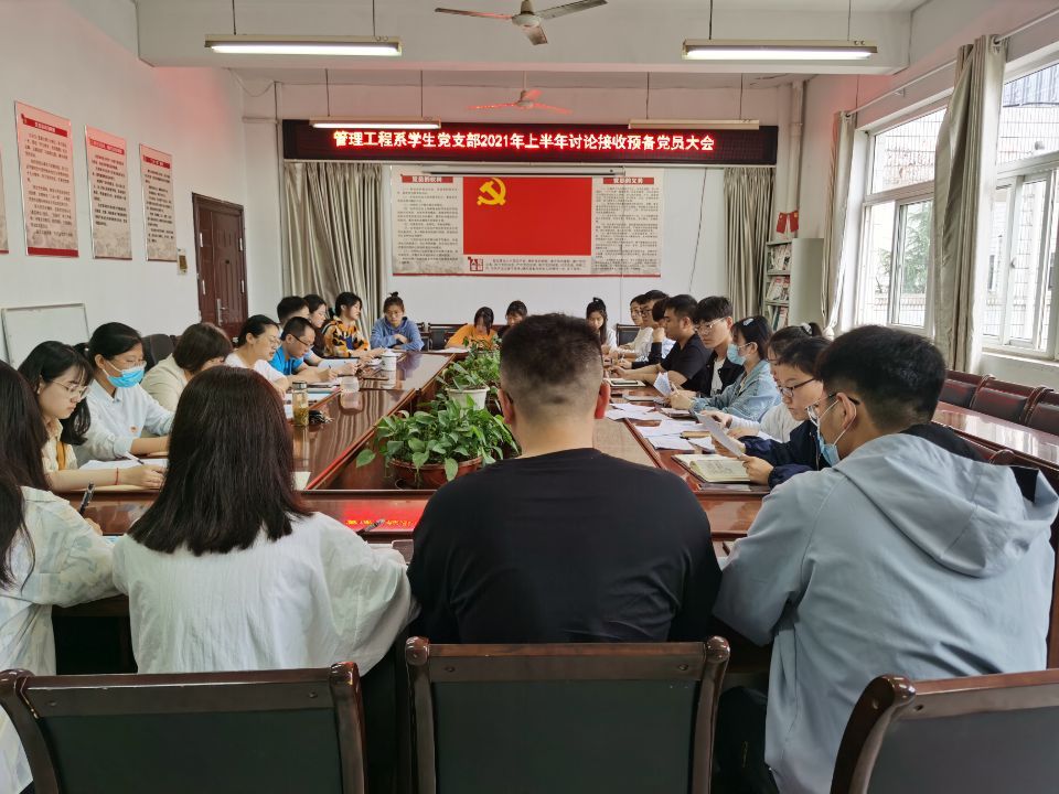 5月26日,管理系學生黨支部在系會議室召開討論接收預備黨員大會。會議由支部書記劉元元主持。