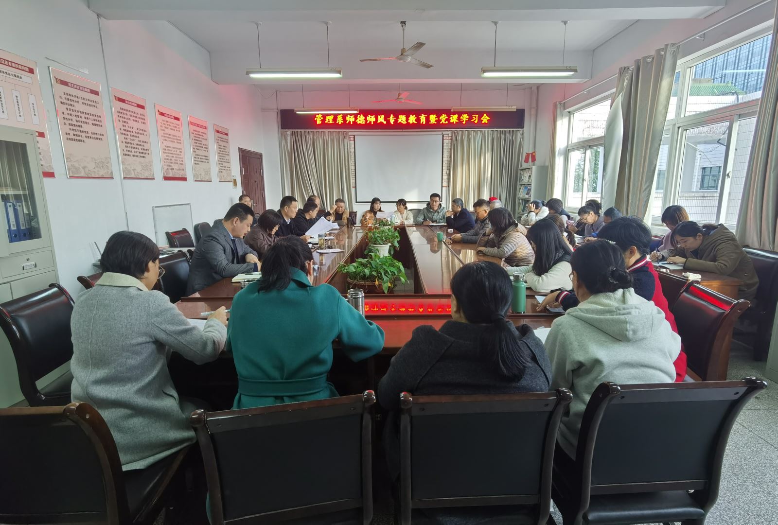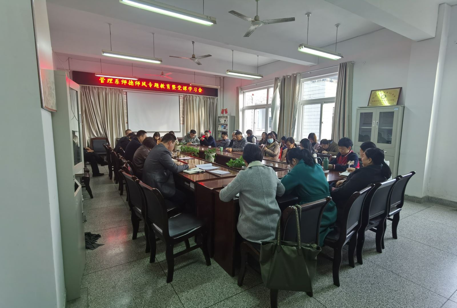 為了深入開展師德師風專題教育與黨史教育,11月10日,管理系召開師德師風專題教育暨黨課學習會。會議由管理系黨總支書記汪思曼主持,系全體教師參加會議。