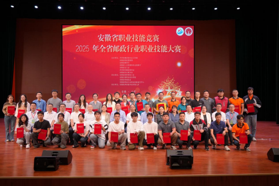頒獎環節,梁洪波代表大賽組委會向所有參賽選手的全力以赴、工作人員的辛勤付出,以及給予大賽關心支持的領導和社會各界表示衷心感謝,并宣布安徽省職業技能競賽——2025 年全省郵政行業職業技能大賽圓滿結束。隨后,與會領導、獲獎團隊代表和選手共同上臺合影留念,定格這一榮耀時刻。