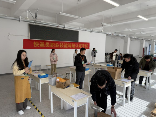 考試嚴格遵循國家職業技能標準,采用 “上午理論 + 下午實操” 的模式。理論考試聚焦行業法規、安全規范及服務標準等核心內容,實操考核則圍繞快件收寄、分揀、封裝等關鍵環節展開,全面檢驗考生綜合業務能力。考場上,考生沉著應考、操作規范,展現了良好的職業素養。