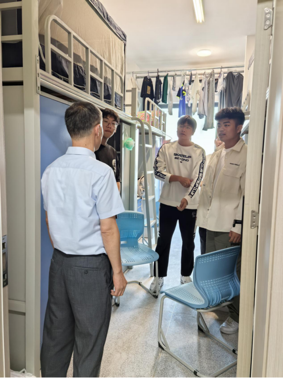 9月23日,院黨委委員、紀(jì)委書記季傳友,管理系黨總支書記汪思曼以及新生輔導(dǎo)員來到宿舍,他們鼓勵(lì)新生珍惜大學(xué)時(shí)光,努力學(xué)習(xí),注重綜合素質(zhì)提升,并強(qiáng)調(diào)宿舍是生活、學(xué)習(xí)與交流的重要場(chǎng)所,要注意宿舍安全,遵守學(xué)校規(guī)章制度,共同營(yíng)造一個(gè)安全、舒適、和諧的生活環(huán)境。新生們對(duì)老師們的關(guān)懷表示衷心感謝,紛紛表示會(huì)積極適應(yīng)新環(huán)境,努力學(xué)習(xí),不負(fù)韶華,為未來的大學(xué)生活奠定堅(jiān)實(shí)基礎(chǔ)。