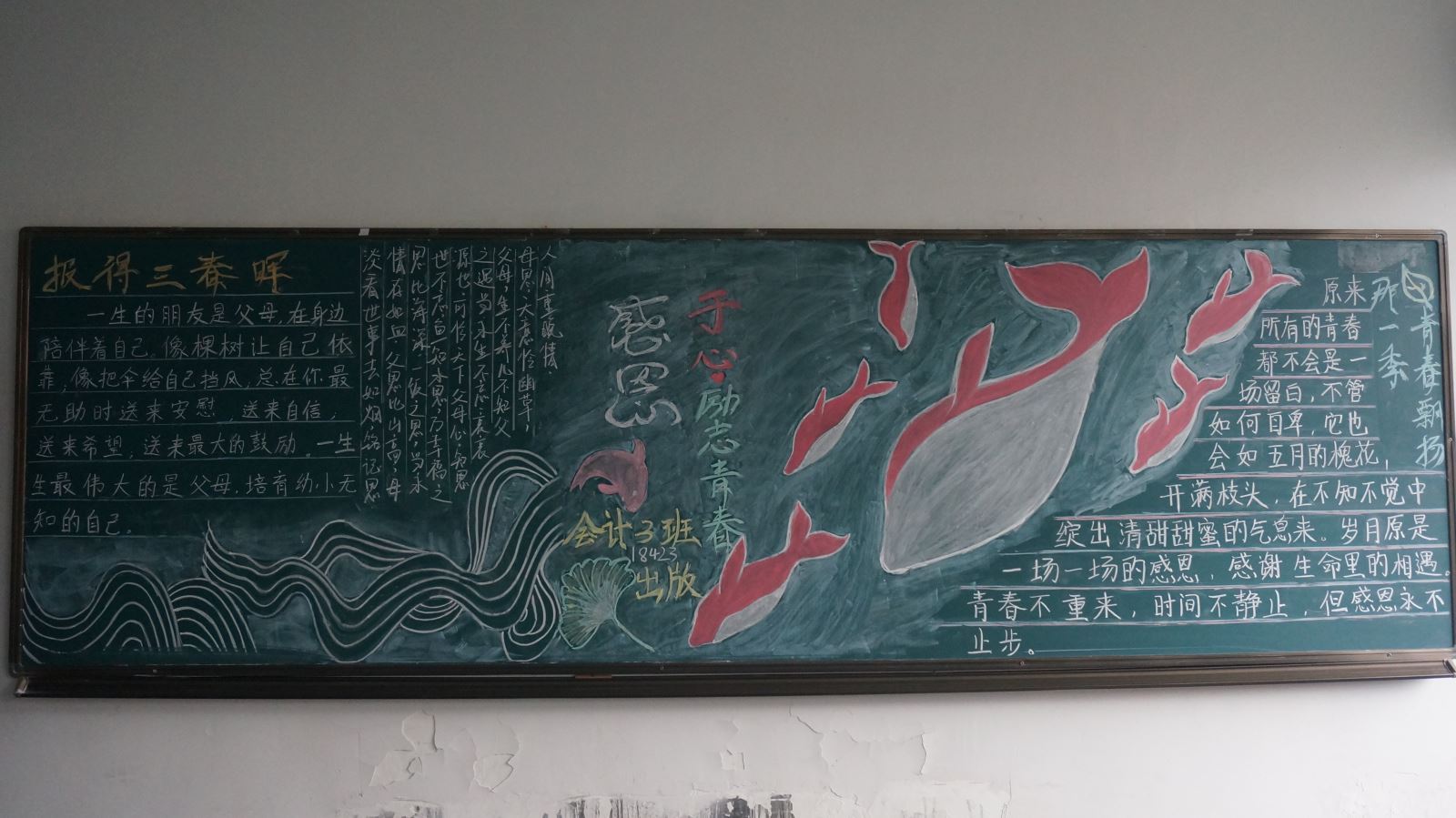 全系學生參與,集中與分散相結合。開展“助學·筑夢·鑄人”主題征文活動、學生資助宣傳畫設計比賽、“感恩于心·勵志青春”主題板報評比活動、“用愛奉獻·用心回饋”主題班會活動