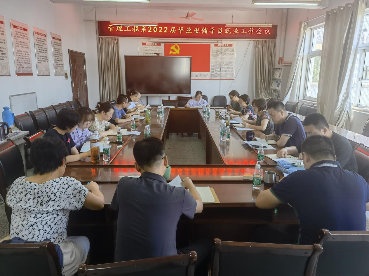 為進一步推進2022屆畢業(yè)生就業(yè)工作,認真貫徹落實“一改兩為”會議精神,8月22日管理工程系在系會議室召開2022屆畢業(yè)班輔導員就業(yè)工作會議。管理工程系黨總支書記汪思曼、主任岳朝暉、副書記陶琪、各教研室主任和全體畢業(yè)班輔導員參加會議,會議由汪思曼主持。