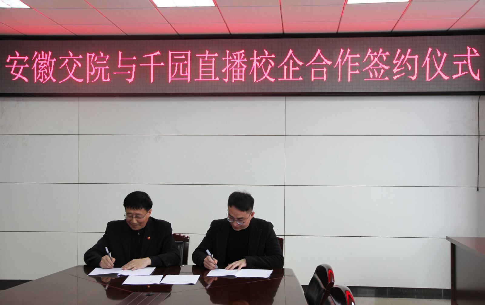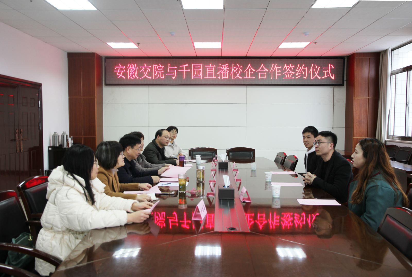 3月11日上午,學(xué)院與合肥千園直播舉行校企合作簽約儀式。副院長(zhǎng)王豐勝、千園直播聯(lián)合創(chuàng)始人兼人力總監(jiān)李輝、管理系黨總支書記汪思曼、管理系主任劉安婕以及電子商務(wù)教研室部分骨干教師和企業(yè)隨行人員參加了本次簽約儀式。