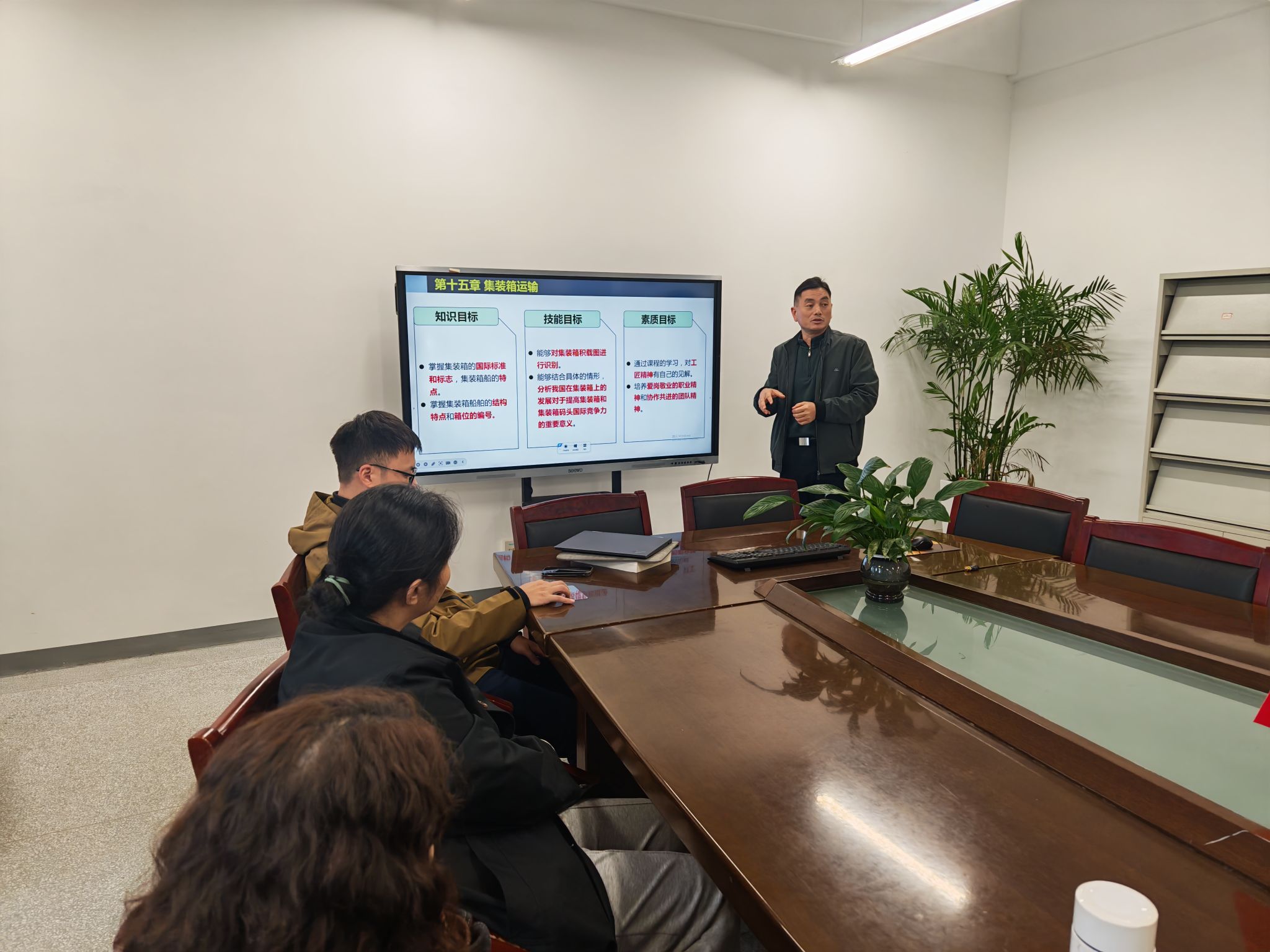 示范課由航海技術專業教師王在高主講。以《船舶結構與貨運課程》課程為示范,以“時代背景→課程定位→港口建設→案例引入→集裝箱發展→知識講解”為邏輯主線,以提出問題為驅動引出知識,以解決問題為目標傳授知識,通過中國滬東船廠生產的海上“超級帶貨王”全球最大級別集裝箱船——中國集裝箱發展史及在國際地位的崛起的案例,深入挖掘蘊含在課程內容中的思政元素。在提升學生專業能力的同時,培育了學生的愛國情懷、工匠精神、創新意識和社會責任感,實現了知識傳授與價值引領的有機統一,為課程思政教學提供了良好示范。