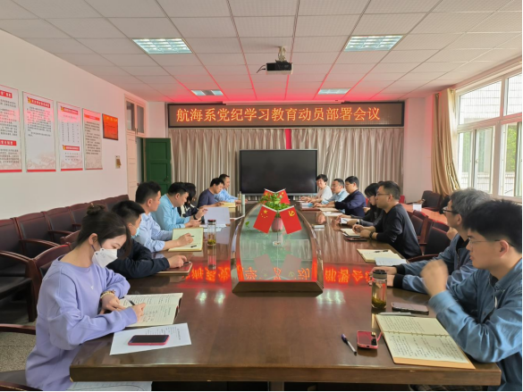 4月16日下午,航海系黨總支書記劉超在系會議室主持召開黨紀學習教育動員部署會議,系全體黨員參會。