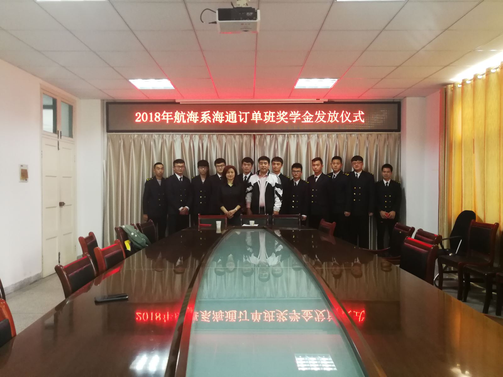 2018年10月24日,航海系舉行了2018航海系“海通訂單班獎(jiǎng)學(xué)金發(fā)放儀式”和“中船訂單班獎(jiǎng)學(xué)金發(fā)放儀式”,參加本次會(huì)議的有江蘇海洋船舶管理有限公司輪機(jī)長(zhǎng)張保安、人力資源部經(jīng)理徐玉萍、上海中船海員管理有限公司副總經(jīng)理陳華建,以及訂單班全體同學(xué)。