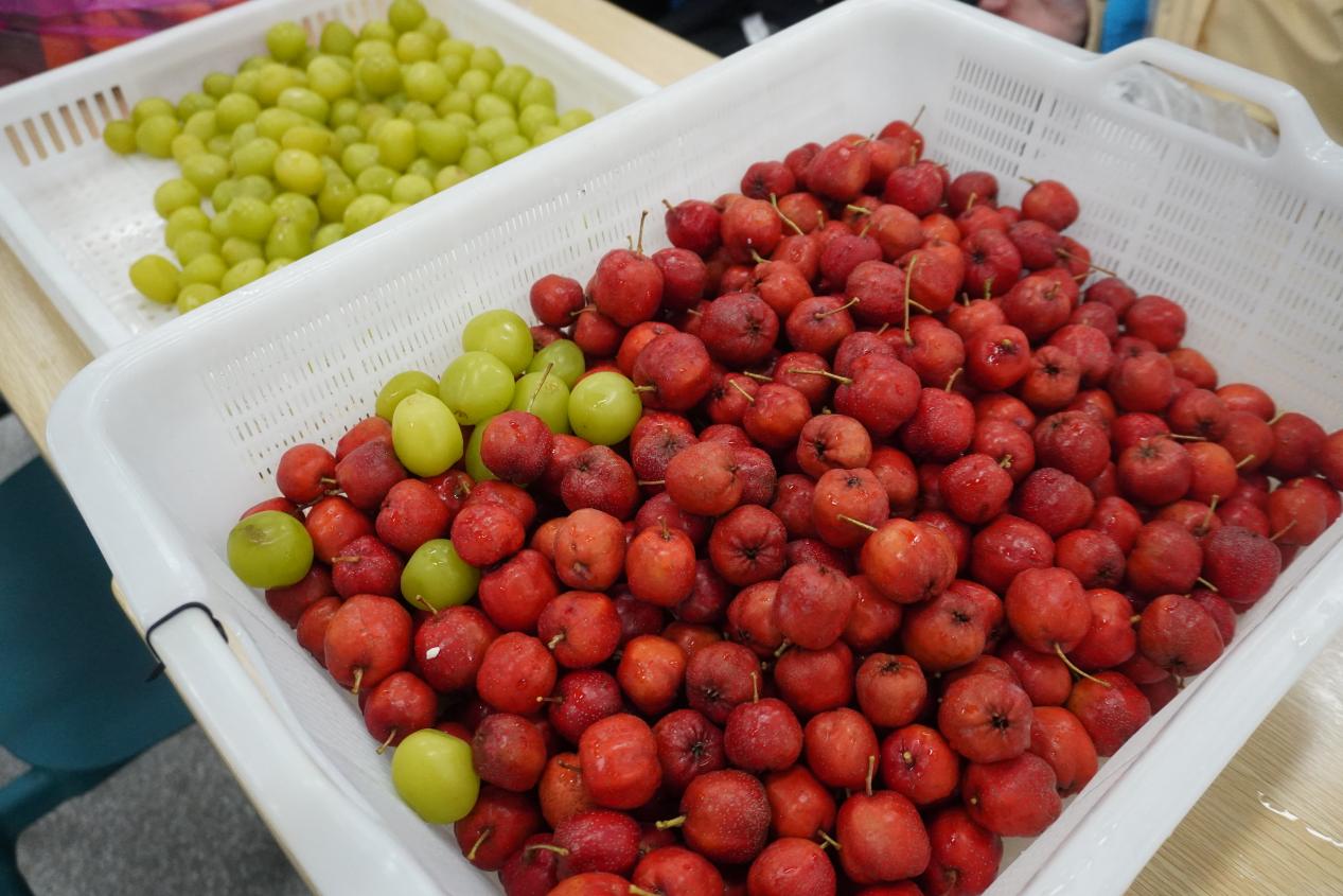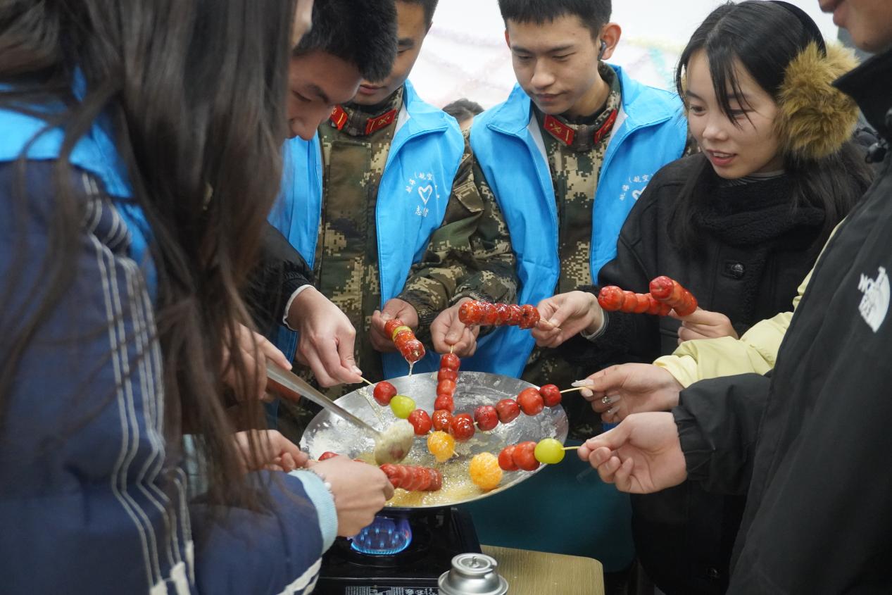 在學生會志愿者的示范指導下,師生們紛紛動手,將水果穿成串,然后小心翼翼地在糖漿中翻滾,看著糖漿均勻地包裹在水果上,逐漸凝固成一層晶瑩的糖衣,一支支色澤誘人、香甜可口的冰糖葫蘆便制作完成了。