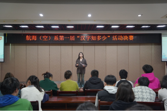 為培育和踐行社會主義核心價值觀,弘揚中華優秀傳統文化,增強文化自信,提升學習熱情,3月26日晚,航海(空)系第一屆“漢字知多少”大賽決賽在大學生活動中心舉行。來自各個專業的24名選手組成的6支隊伍,經過初賽、復賽,一路過關斬將,在決賽現場一展風采。系學生管理老師同全系100余名同學共同觀看比賽。