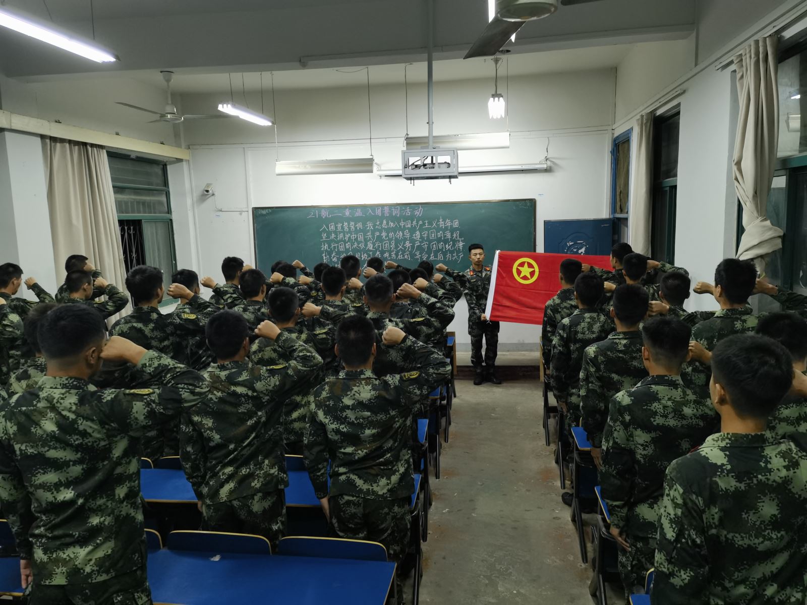 活動伊始,團歌響起,鏗鏘音符之間,航海系各班團支部全體成員懷著對革命先輩之崇敬、對當今中國之自豪,唱出當代青年的擔當、未來的希望。齊唱完團歌后,全體成員面向中國共青團團旗,高舉右拳,重溫入團誓詞,進行莊嚴宣誓。宣誓是種形式,更是種激勵,一種鞭策,一種對信仰的強化,它帶給我們的震撼已遠遠超過誓詞本身這短短的幾句話。鏗鏘有力的誓詞激勵著青年傳承紅色基因,不忘初心,緊跟黨的腳步,以不畏艱難、勇于擔當?shù)淖藨B(tài),迎接新時代的挑戰(zhàn)!