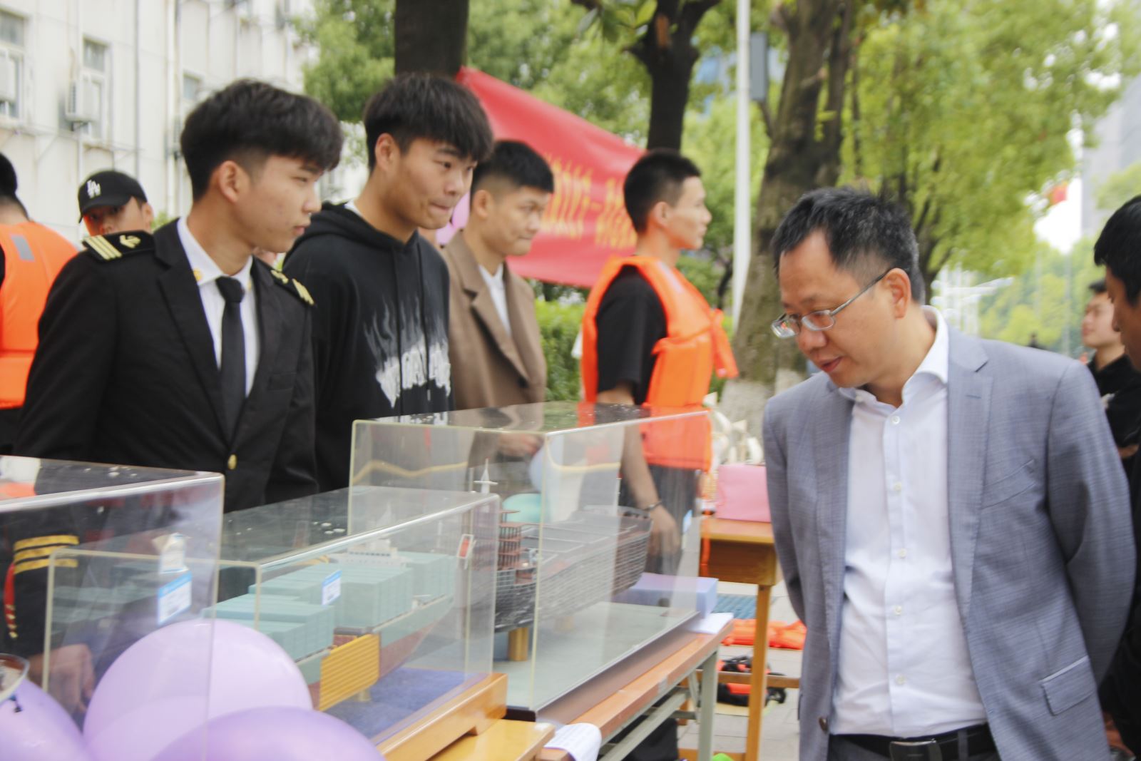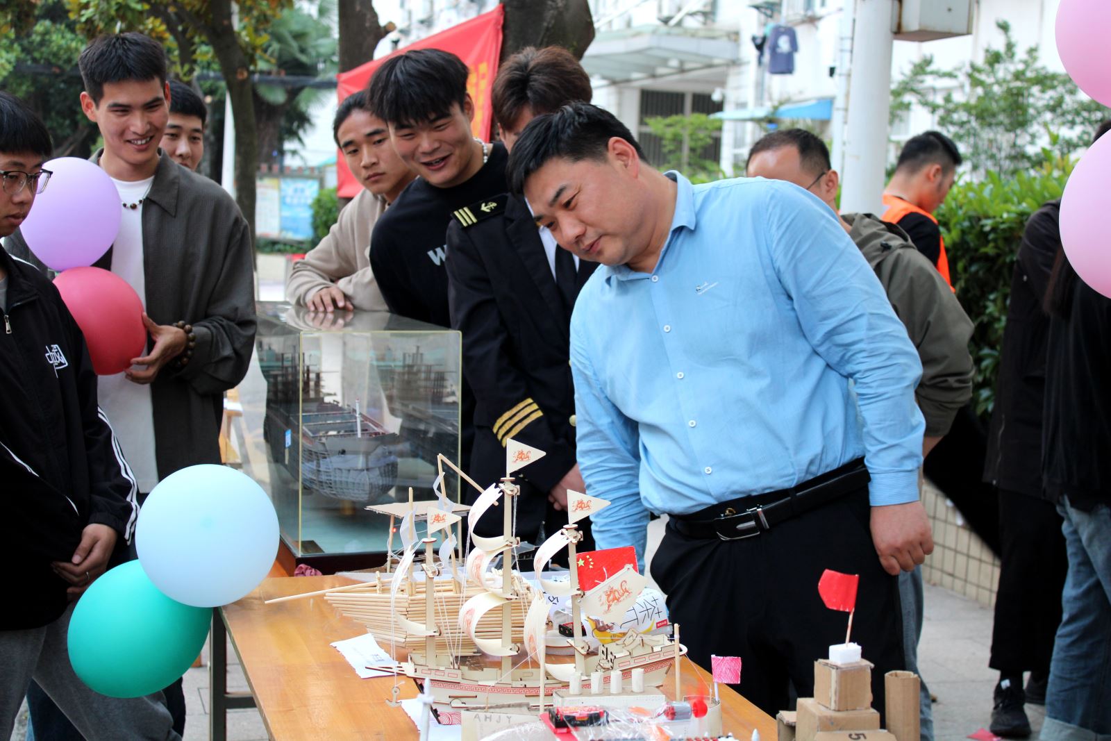 5月中旬,航海系舉辦了船模展活動,將船模、錨、舵輪等搬到教學樓前讓全校師生共同欣賞。雖然烈日當空,但前來參與活動的同學絡繹不絕。航海系學生將所學理論運用到實際,熱心地向參觀師生介紹船舶分類、船舶構造等方面的知識,并對同學的困惑做了耐心而細致的解答。活動提高了我校廣大師生對航海類專業知識的認識與了解,展現了航海系學生的專業技能和素養,將幫助同學們今后更好地投入到專業學習當中。