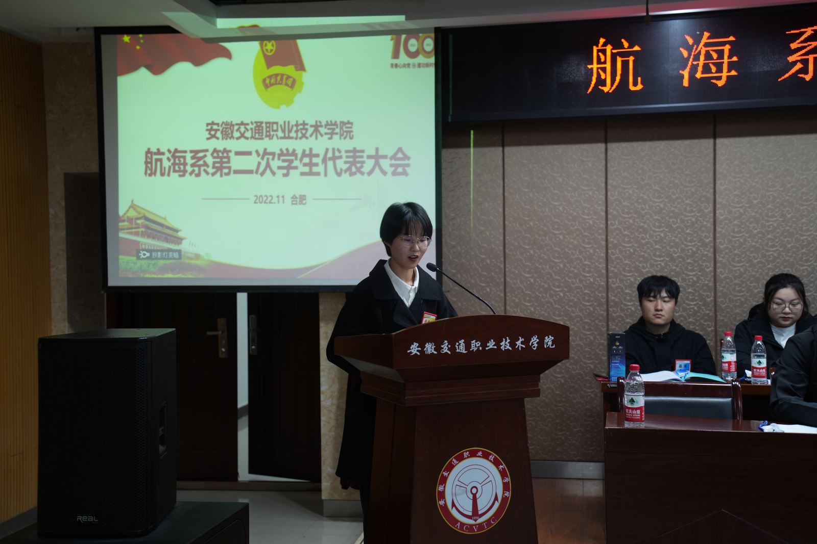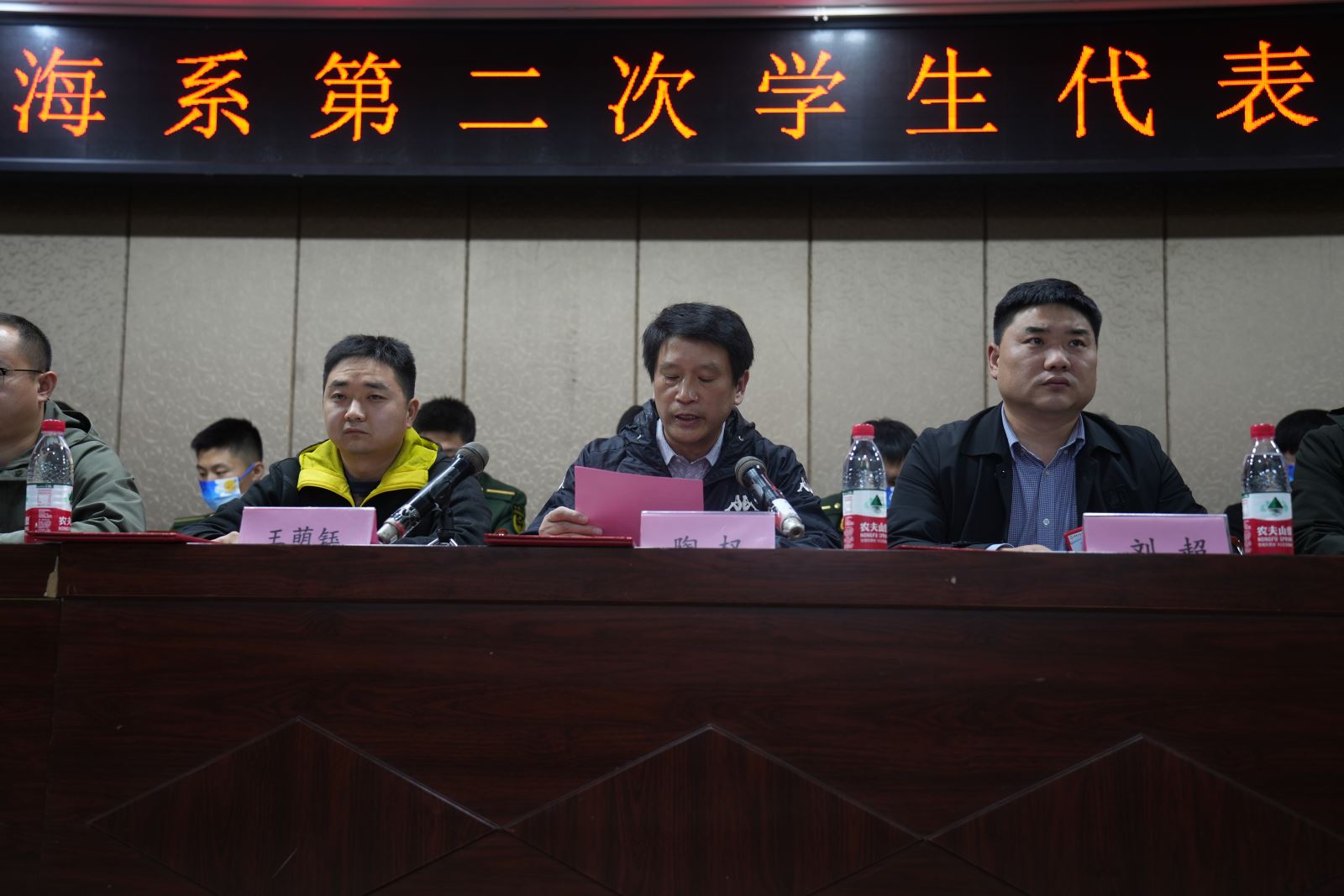 11月16日,航海系第二次學生代表大會在大學生活動中心勝利召開。航海系黨支部書記陶權、主任劉超、副主任王在高、系學生管理老師出席會議,院團委委員王萌鈺應邀出席。系學生會主要負責人、正式代表、列席代表共計八十余人,認真履職參會。
