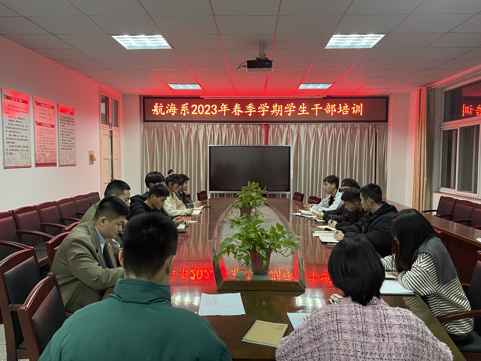 為了加強(qiáng)學(xué)生骨干隊(duì)伍的建設(shè),提高學(xué)生干部政治素養(yǎng)和工作能力,明確團(tuán)學(xué)干部工作目標(biāo)與要求,3月27日晚,航海系團(tuán)總支在系會(huì)議室開(kāi)展了2023年春季學(xué)期學(xué)生干部培訓(xùn),本次培訓(xùn)由系學(xué)生會(huì)主席主持,團(tuán)總支負(fù)責(zé)人王晨及全體團(tuán)學(xué)干部參加。