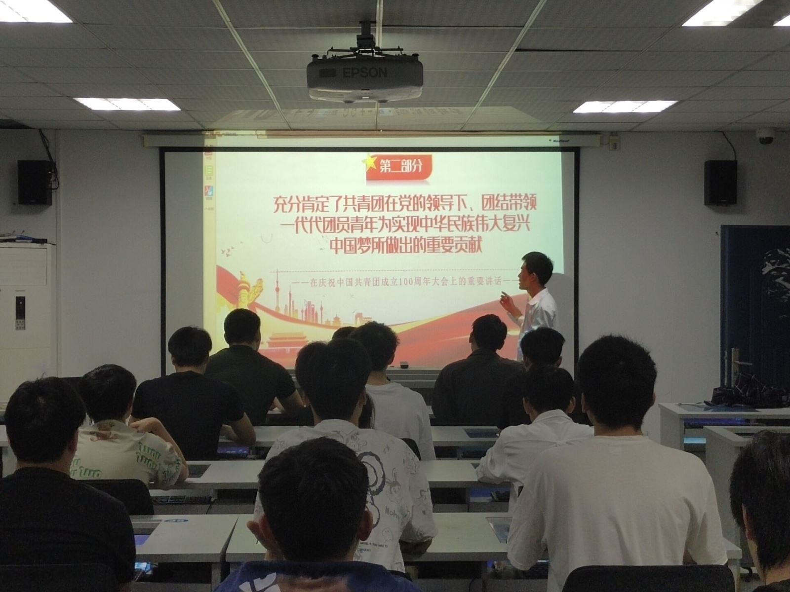 5月16日,系團總支王晨老師給系學生會干部、各班班長和團支書開展了《數讀:習近平總書記在中國共青團成立100周年大會上的重要講話精神》主題團課。