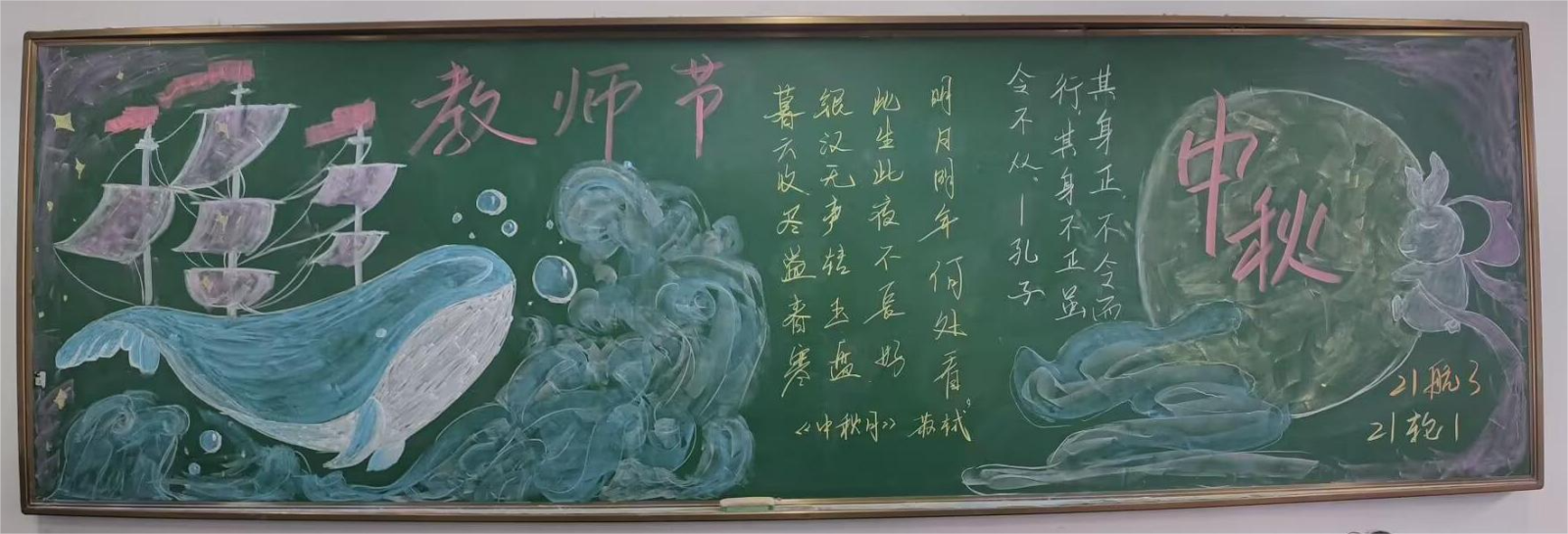 月蟾嫦娥舞玉桂,丹心熱血沃新花。本次黑板報評比活動,加深了同學們對傳統佳節文化內涵的理解,又將對每位老師的感恩之情蘊含在在一幅幅色彩豐富的圖畫中。大家紛紛表示不僅要學好知識,還要努力繼承和弘揚我國的優秀傳統文化,做一個有家國情懷的新時代青年。(航海系 王晨)