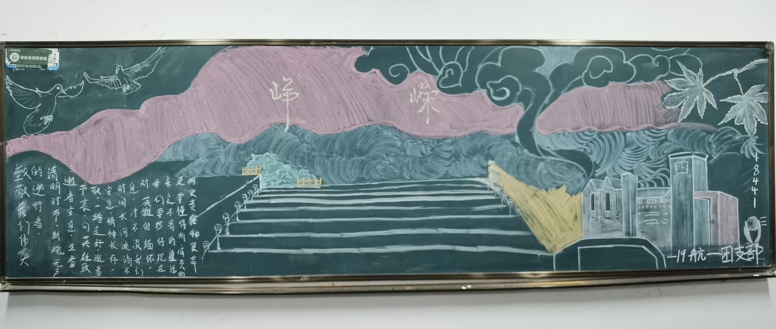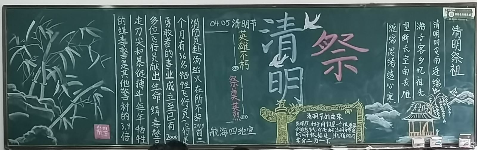 4月12日,系團(tuán)總支開展了“清明祭英烈”主題板報(bào)設(shè)計(jì)活動。一張張板報(bào)主題鮮明,圖文并茂,富含寓意,表達(dá)了同學(xué)們對革命先烈的深切緬懷,傳達(dá)了同學(xué)們對革命先烈的無比崇敬之情。精美的板報(bào)吸引了許多學(xué)生駐足觀看。