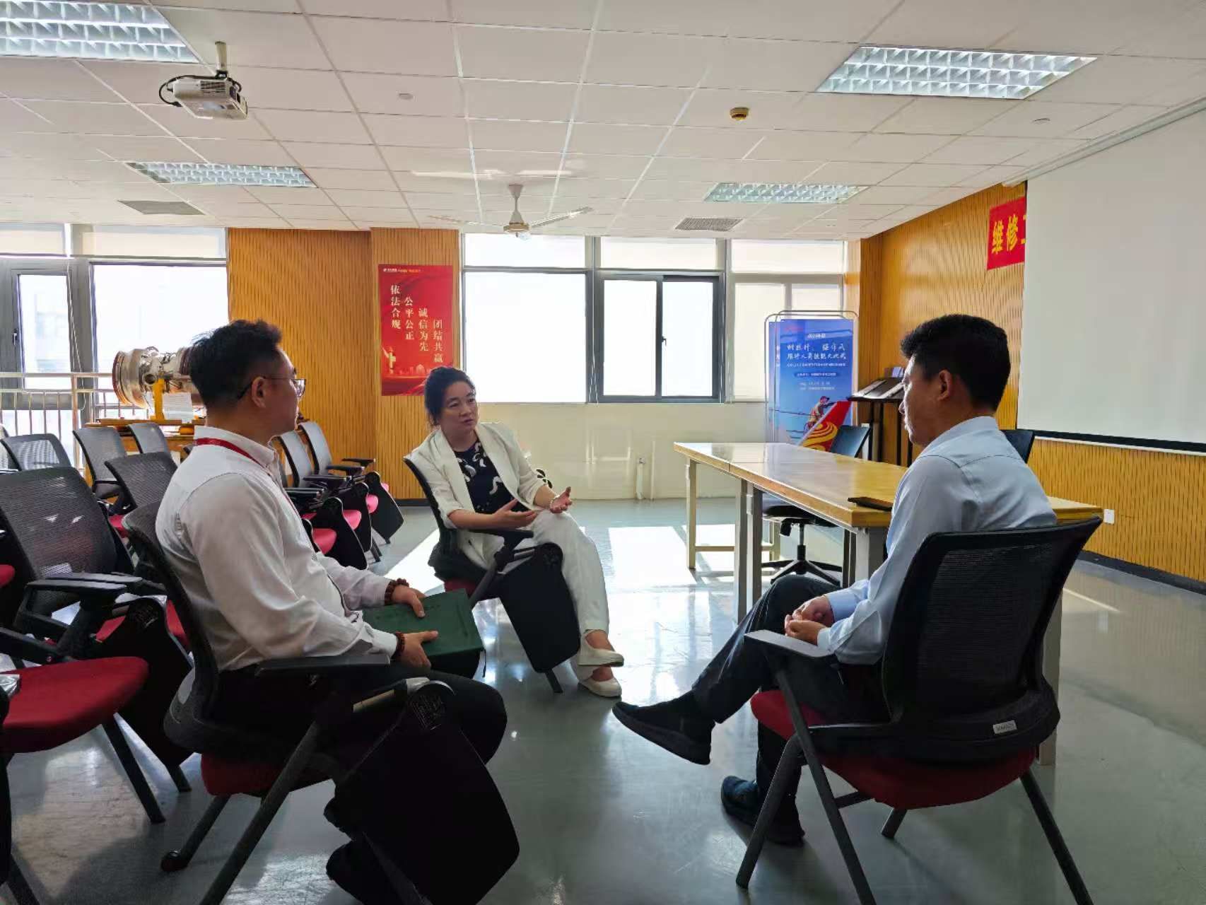 梁洪波副校長介紹了學校的基本情況以及在航空領域的辦學特色和人才培養優勢。她表示,學校積極響應國家戰略,已將國產大飛機相關技術納入人才培養方案改革方向,希望通過與金鵬航空的深度合作,共同打造產教融合新典范,為國產飛機發展輸送更多優秀人才。座談會后,梁洪波副校長參觀了金鵬航空機務訓練中心,深入了解飛機維修訓練設施和操作流程。