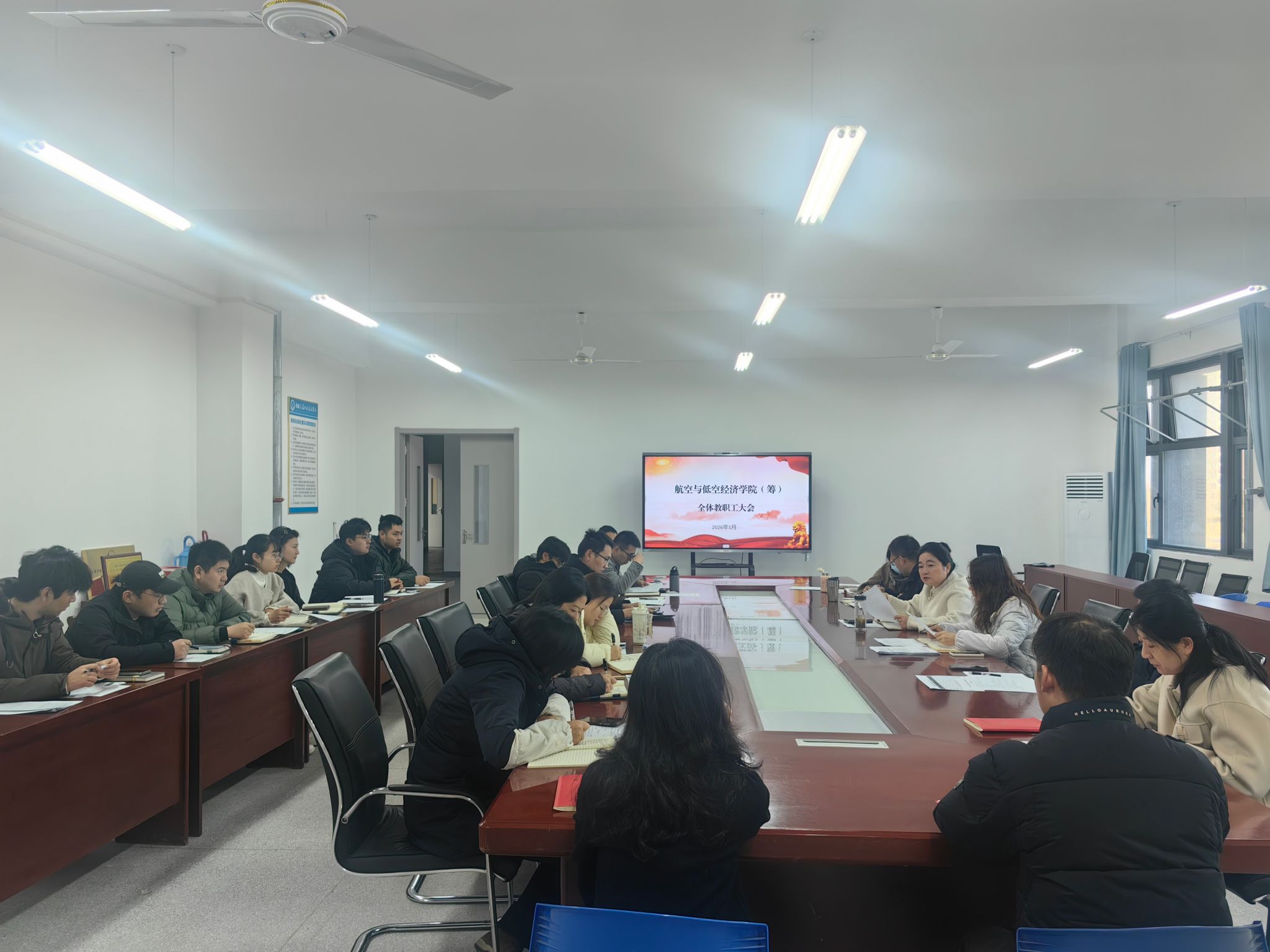 1月16日,航空與低空經濟學院(籌)召開全體教職工大會,全面學習上級精神,部署寒假及新學期重點工作。會議由校黨委委員、副校長、航空與低空經濟學院(籌)院長、黨支部書記梁洪波主持,全體教職工參會。