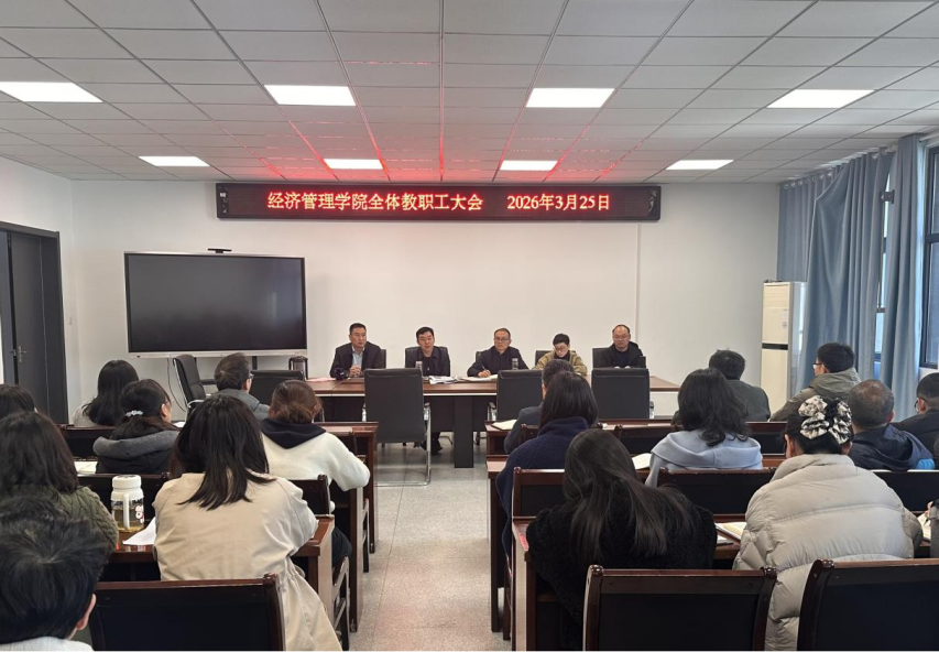 3月25日,經濟管理學院在文華樓會議室召開全體教職工大會,集中學習上級精神、部署近期重點工作。校黨委副書記、校長孫曉雷蒞臨指導,校辦公室主任張娟列席,學院黨總支書記夏保軍主持會議,全體教職工參會。