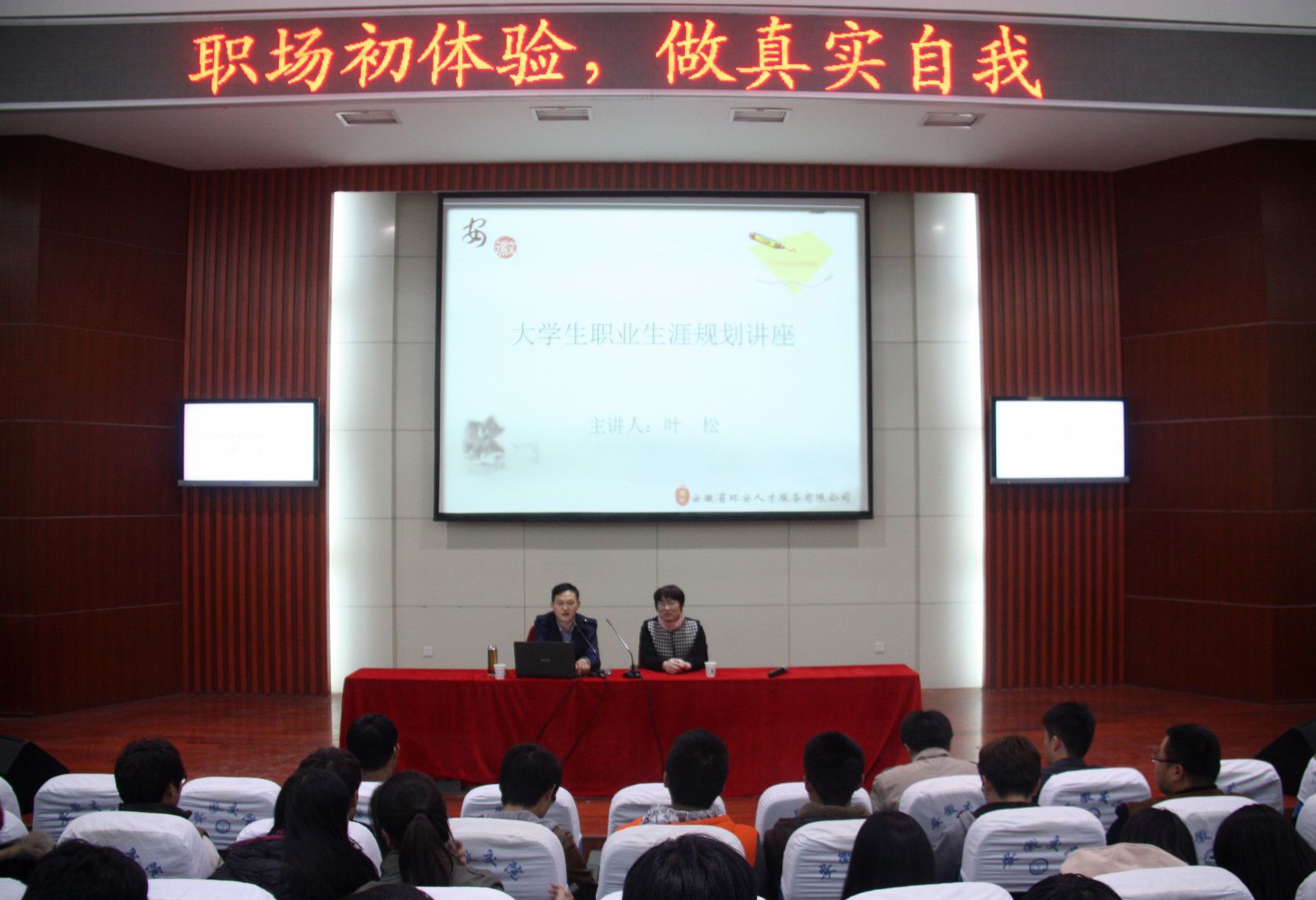 11月20日晚7:00,安徽懷安人才服務(wù)有限公司總經(jīng)理葉松應(yīng)邀來院為同學(xué)們作“職場(chǎng)初體驗(yàn),做真實(shí)自我”主題大學(xué)生職業(yè)規(guī)劃講座。