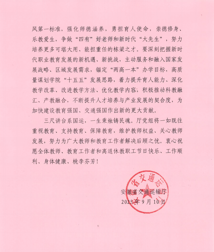 教師節(jié)快樂(lè)丨省交通運(yùn)輸廳致學(xué)校廣大教師、教育工作者的慰問(wèn)信