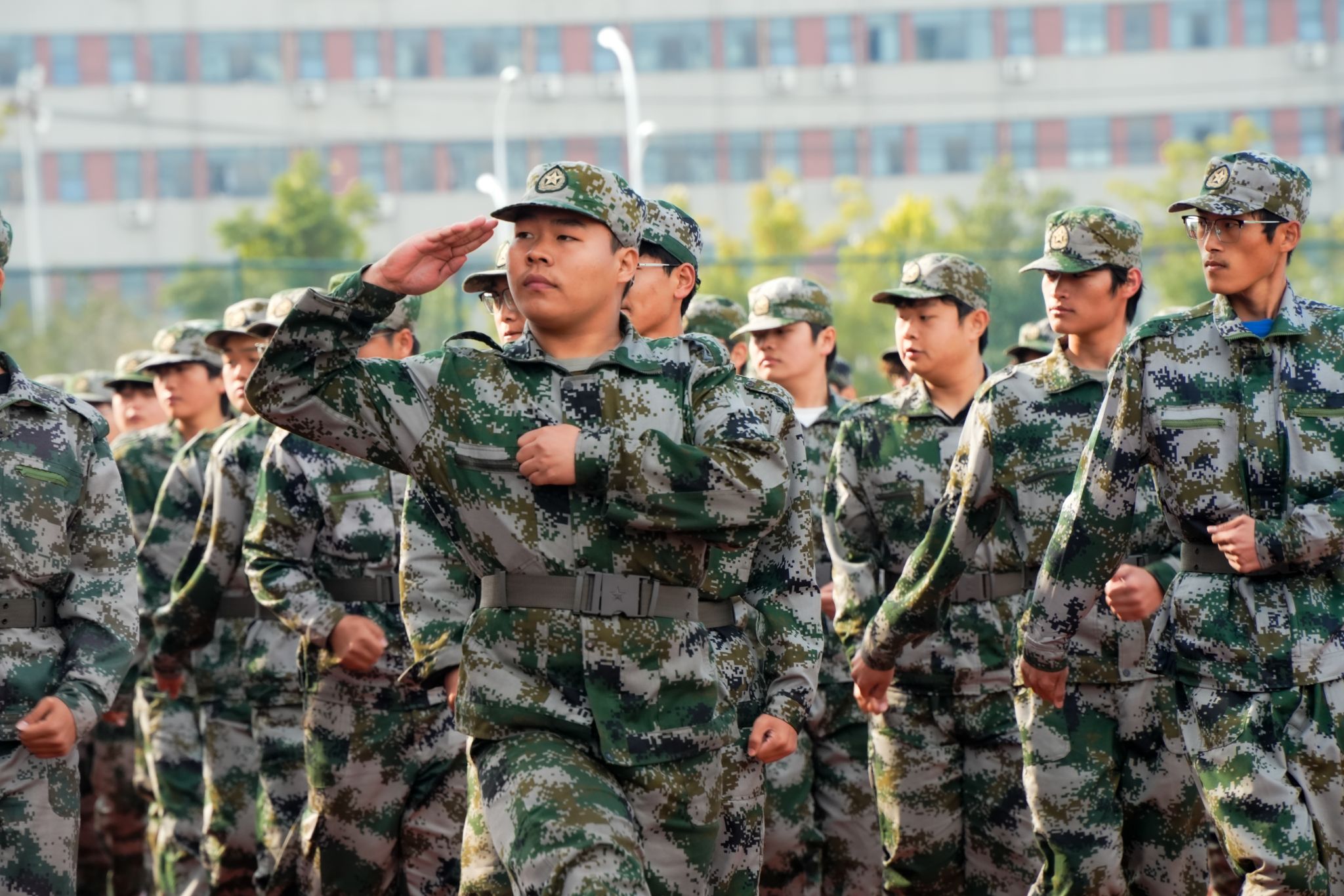 孫曉雷宣布2025級新生軍訓成果展示開始。隨著一聲令下,各方陣在帶隊教官的指令下依次通過主席臺進行分列式匯報展示,隨后隊列會操、旗語操、軍體拳、格斗術、刺殺操、應急棍術、匕首操、打背包、戰術表演等匯報項目接連上演,鏗鏘有力的步伐、整齊劃一的動作、意氣風發的斗志,震撼全場,令人熱血沸騰。
