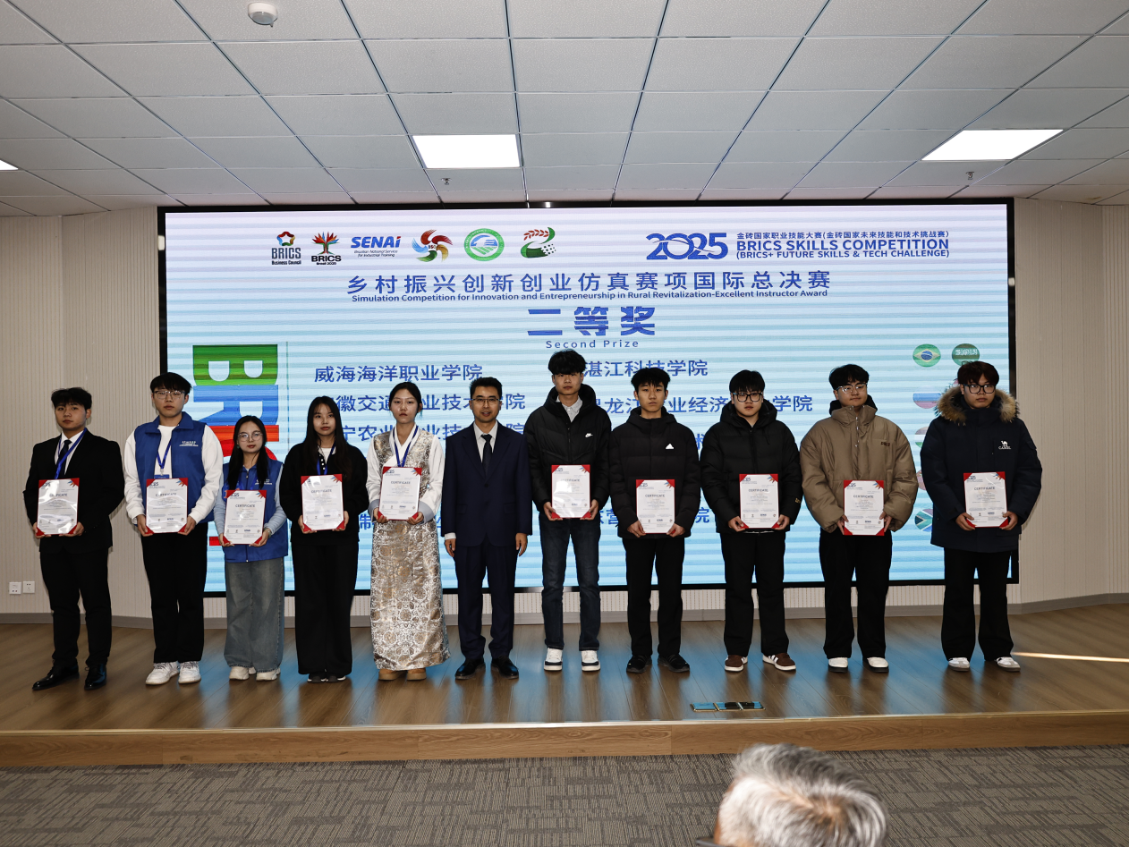 11月17日,2025金磚國家職業(yè)技能大賽鄉(xiāng)村振興創(chuàng)新創(chuàng)業(yè)模擬仿真賽項(xiàng)國際總決賽在鄂爾多斯生態(tài)環(huán)境職業(yè)學(xué)院圓滿落幕。我校經(jīng)濟(jì)管理學(xué)院學(xué)生徐澍、王紫慧、周孜盈憑借扎實(shí)的專業(yè)功底與默契的團(tuán)隊(duì)協(xié)作,歷經(jīng)省級(jí)及區(qū)域選拔賽的層層篩選,在決賽中脫穎而出,成功斬獲國際總決賽二等獎(jiǎng),充分展現(xiàn)了我校學(xué)子在鄉(xiāng)村振興領(lǐng)域的卓越創(chuàng)新能力與扎實(shí)實(shí)踐水平,為學(xué)校贏得了榮譽(yù)。