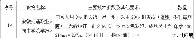 安徽交通職業技術學院教務處就我院《安徽交通職業技術學院學報》2015年4期的印刷服務,面向社會公開詢價采購,歡迎具有相應資質和能力的單位積極參與,并提供滿足要求的貨物。采購項目要求如下: