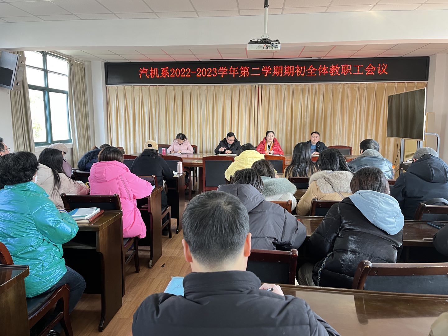 時序更替,華章日新,踏著春天的腳步,我們迎來了2023年春季新學期。為進一步凝聚力量,推動新學期工作有序開展,2月16日下午,汽車與機械工程系召開全體教職工會議。院黨委委員、汽機系主任梁洪波、系黨總支書記沈勁松、副書記汪莉、副主任張峰及全體教職工參加了會議。會議由梁洪波主持。