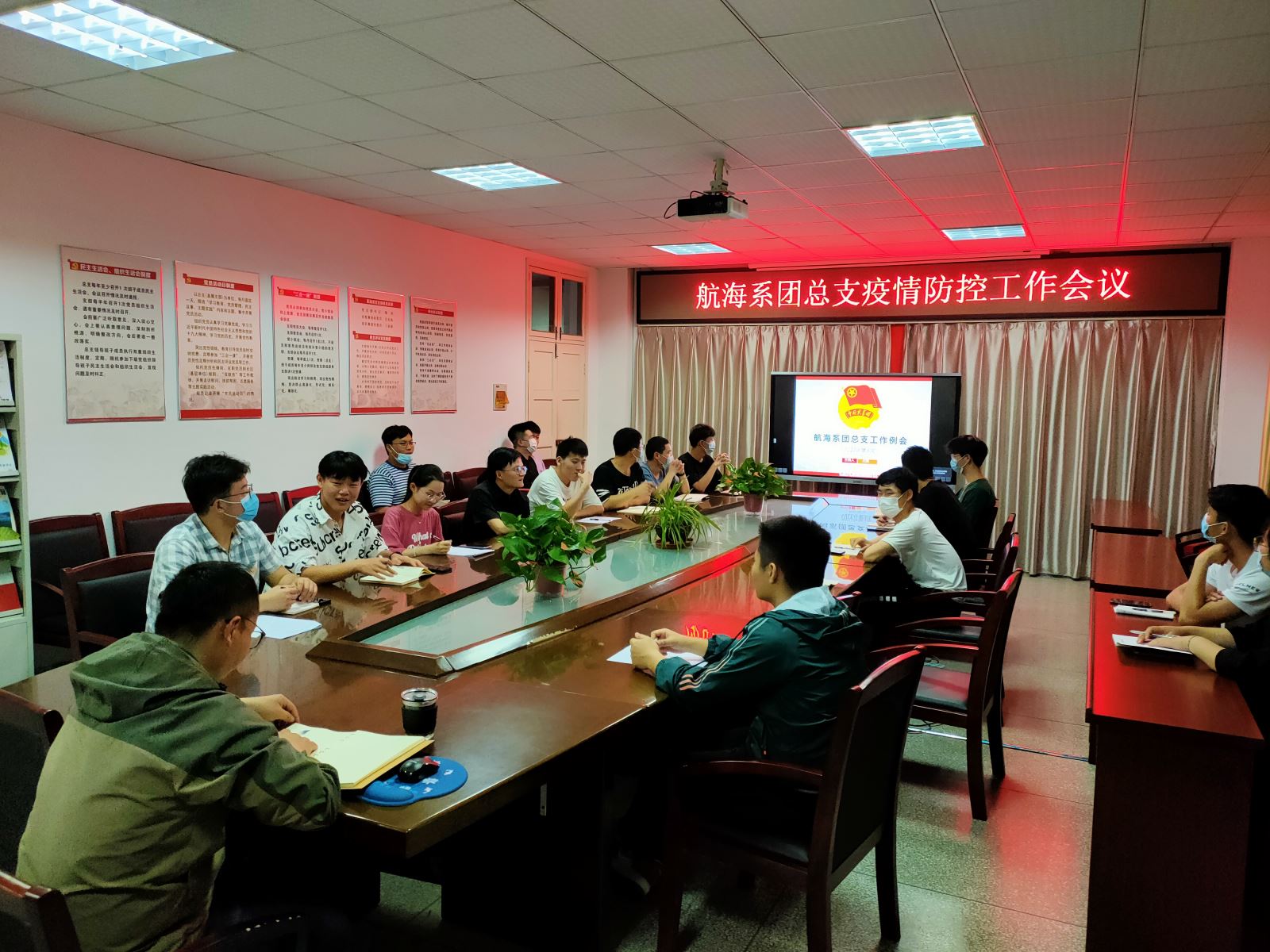 4月15日、18日航海系團總支兩次召開疫情防控工作會議,傳達省、市、學院校園疫情防控會議精神,對系各團支部參與疫情防控工作提出要求。系學生會成員、各班團支書參加會議。