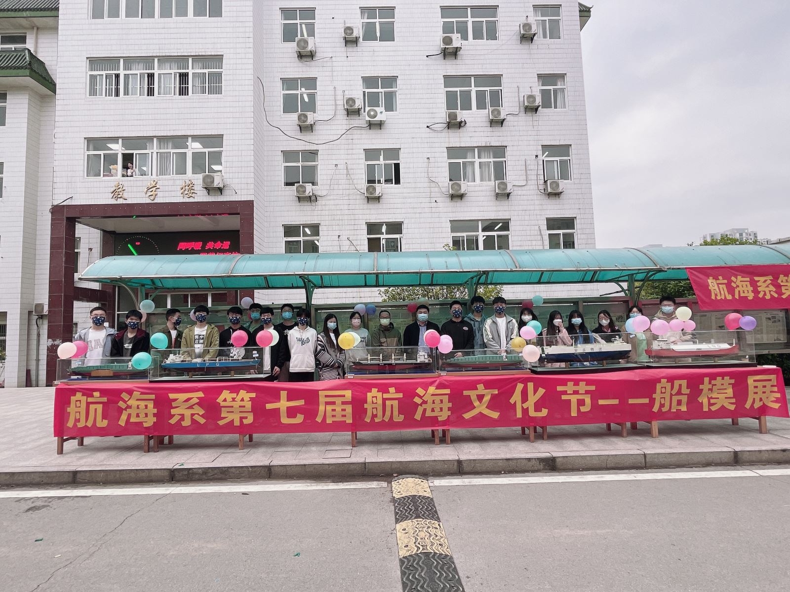 5月初,航海系舉辦了航海船模展活動,將船模、錨、舵輪等搬到教學樓前讓全校師生共同欣賞。