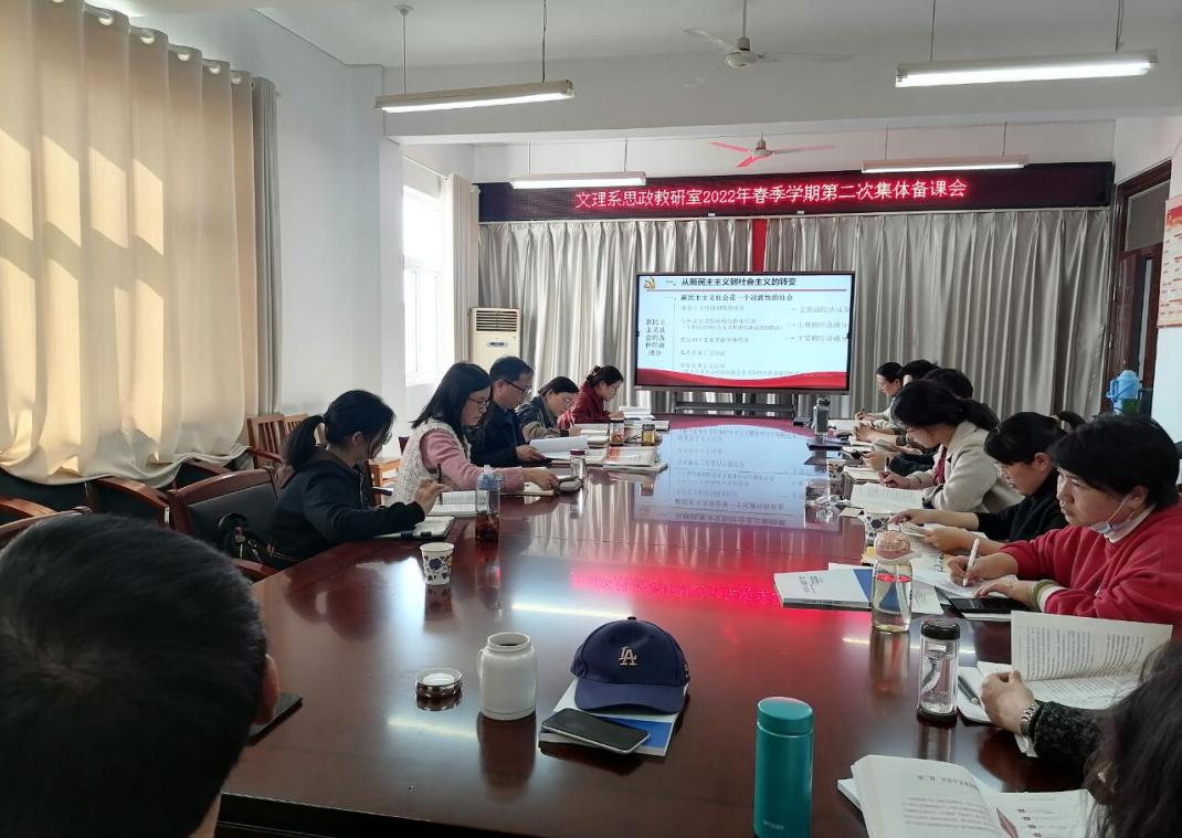3月9日下午,文理系思政教研室召開(kāi)2022學(xué)年春季學(xué)期第二次集體備課會(huì)。系黨總支書(shū)記昌希燦,系黨總支副書(shū)記、副主任王玨出席備課會(huì),全體專(zhuān)(兼)職思政課教師參會(huì),會(huì)議由思政教研室主任燕艷主持。
