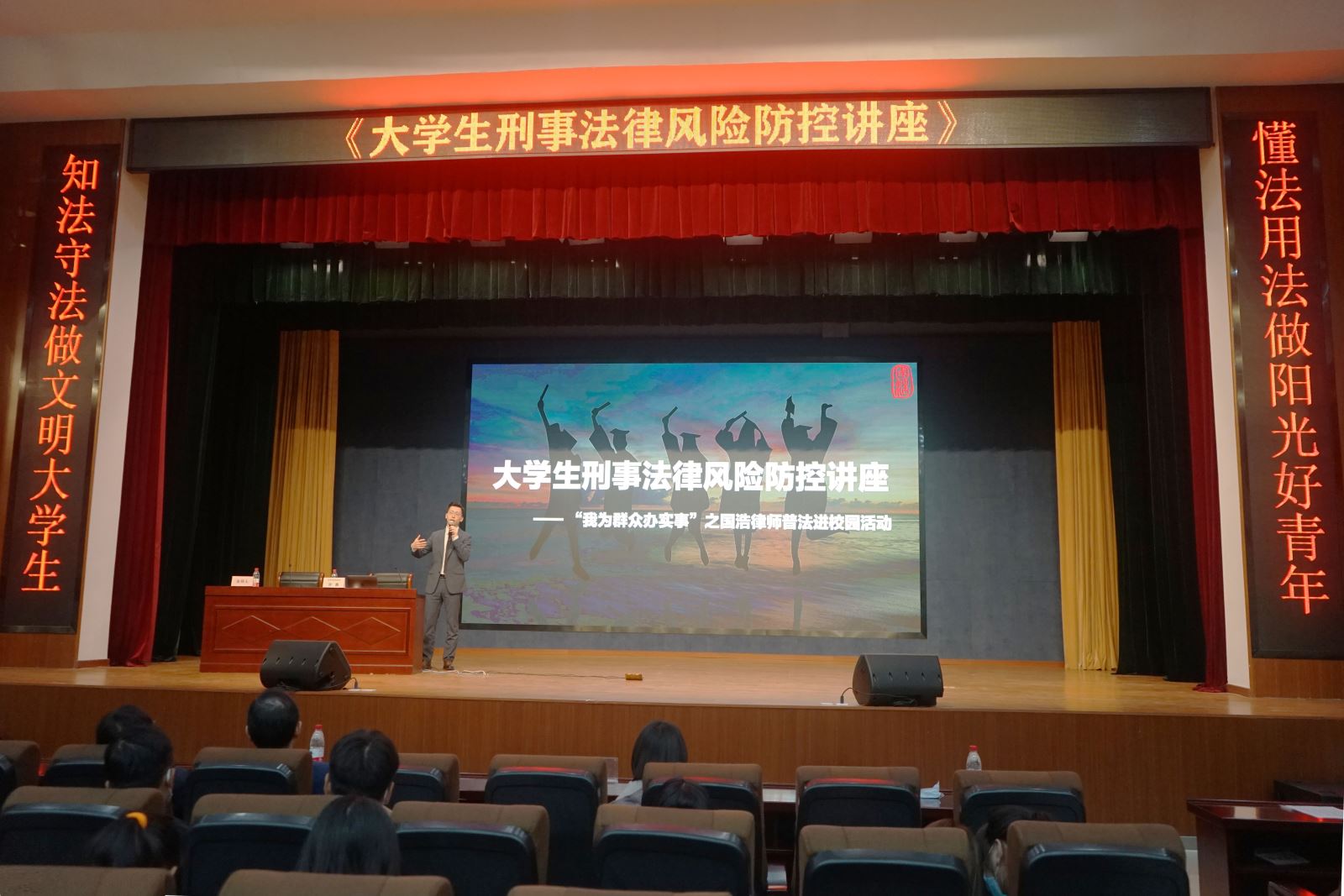 10月17日晚,南區(qū)大禮堂舉行主題為“知法守法做文明大學生,懂法用法做陽光好青年”的法律知識講座。主講嘉賓為國浩律師(合肥)事務(wù)所洪鑫律師,講座由土木系黨總支書記鄒建華主持,文理系黨總支副書記、副主任(全面主持工作)昌希燦做點評。現(xiàn)場500余名師生聆聽了講座。