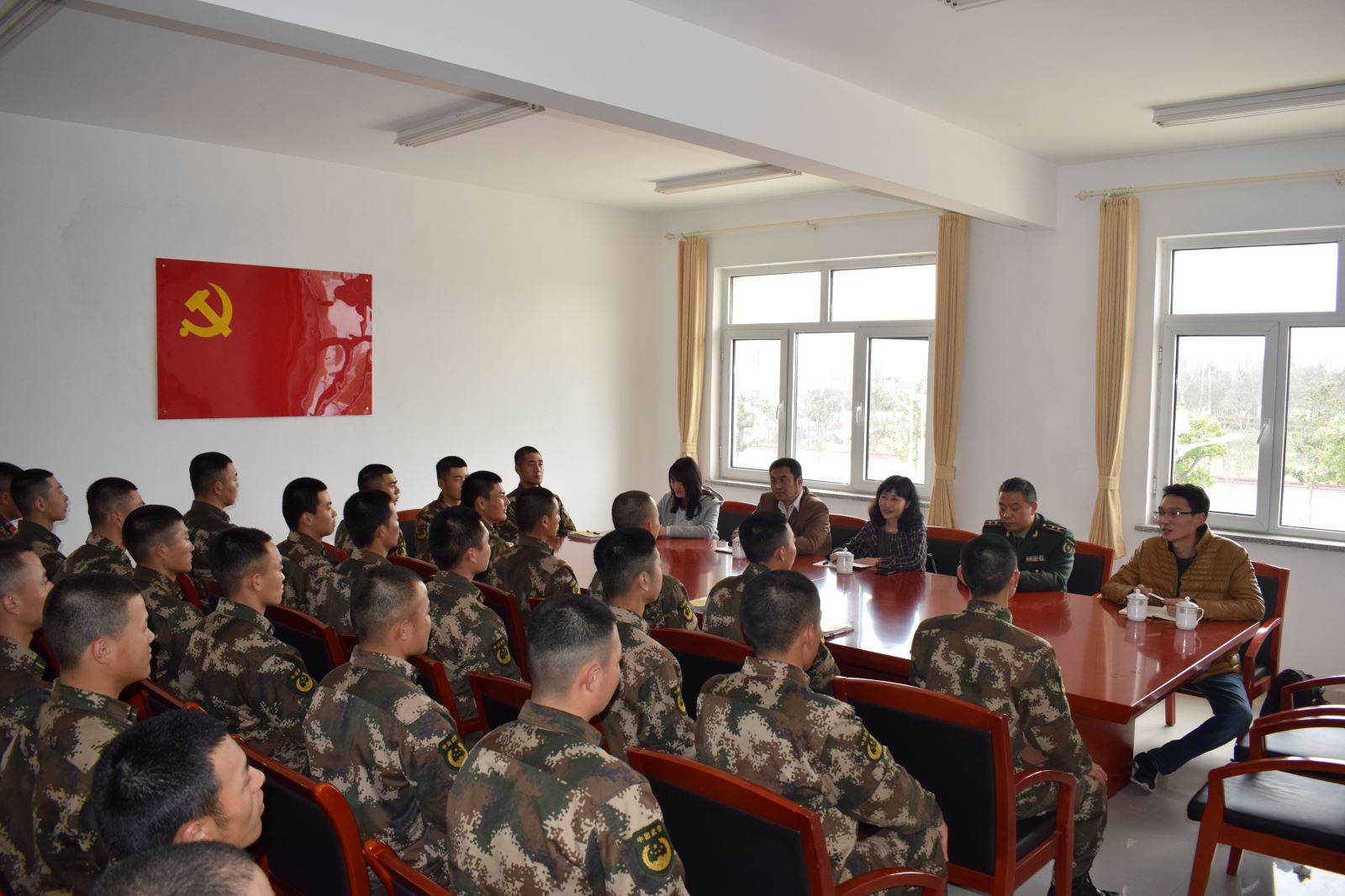 基地江隊長介紹了我院15級定向培養士官生在部隊的生活、學習、封閉訓練情況,認為他們專業知識較扎實、文化理論水平較高、國防知識較為全面、理解能力和領悟能力較強,對他們的綜合素質給予肯定。希望他們能進一步加強鍛煉,不斷提升個人素質,從而不愧為“文明之師,威武之師”。
