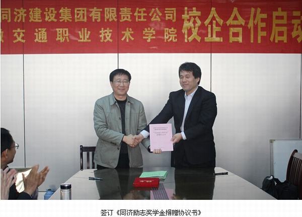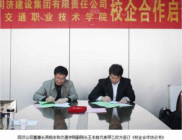 2014年11月4日下午,安徽交通職業技術學院與安徽同濟建設集團有限責任公司校企合作啟動儀式在交通學院舉行。副院長王豐勝,同濟公司董事長吳曉東,同濟公司董事會董事、副總經理趙業榮等領導出席簽約儀式,儀式由我院土木工程系主任王常才主持。