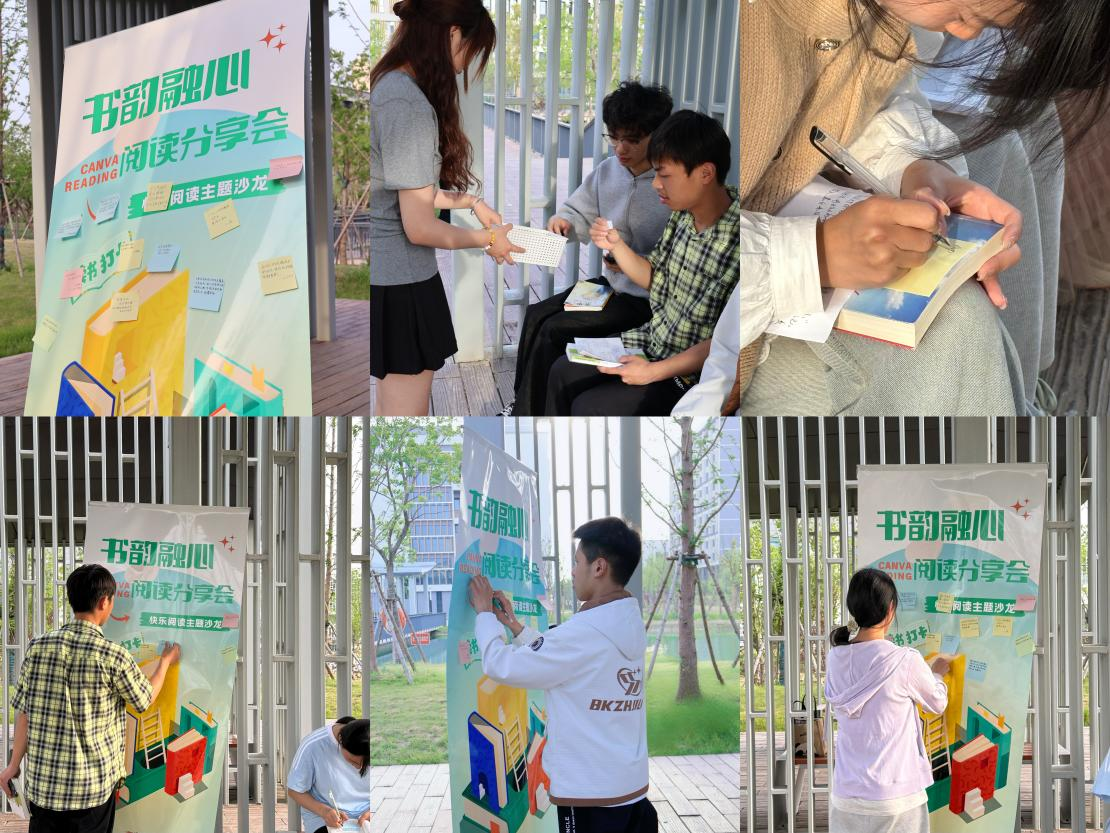 此次讀書系列活動以“閱讀賦能成長,書香浸潤青春”為核心,創新打造多元閱讀場景。“14天閱讀打卡”活動成為同學們自我提升的“成長階梯”,每日在平臺分享讀書心得、摘錄經典片段,以堅持詮釋熱愛,用文字記錄蛻變;“戶外閱讀分享會”將閱讀空間延伸至綠意盎然的校園角落,大家在鳥鳴和微風中交流書中故事與人生感悟 ,碰撞出思想的火花;“書香金句墻”則展示著同學們寫下的動人感悟與深刻思考,成為校園里一道獨特的文化風景線。