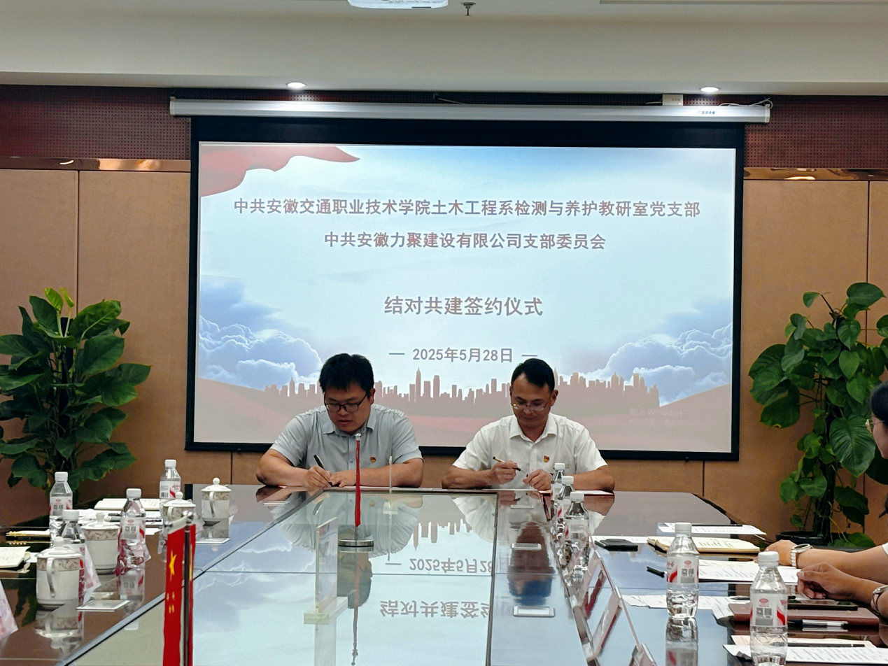 在校企雙方代表的共同見證下,檢測與養護教研室黨支部委員武余波和力聚建設公司黨支部委員趙明共同簽署了《黨支部結對共建活動協議書》。雙方鄭重表示,將嚴格遵循協議約定,深入推進支部共學共建活動,促進校企深度融合與發展。(土木系 武余波)