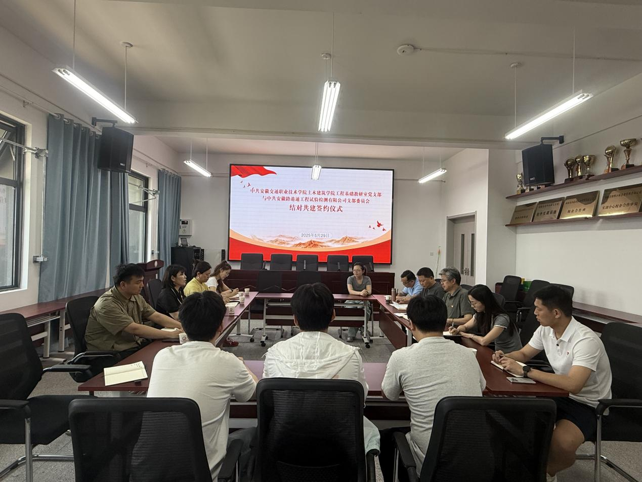 為深化校企合作,探索黨建引領發展新路徑,土木系基礎教研室黨支部與安徽路港通工程試驗檢測有限公司黨支部舉行黨建結對共建簽約儀式。系黨總支書記邵登泰,工程基礎教研室黨支部書記董澤進,安徽路港通工程試驗檢測有限公司副總經理(主持工作)、黨支部書記邵艷以及黨員、學生代表出席活動。