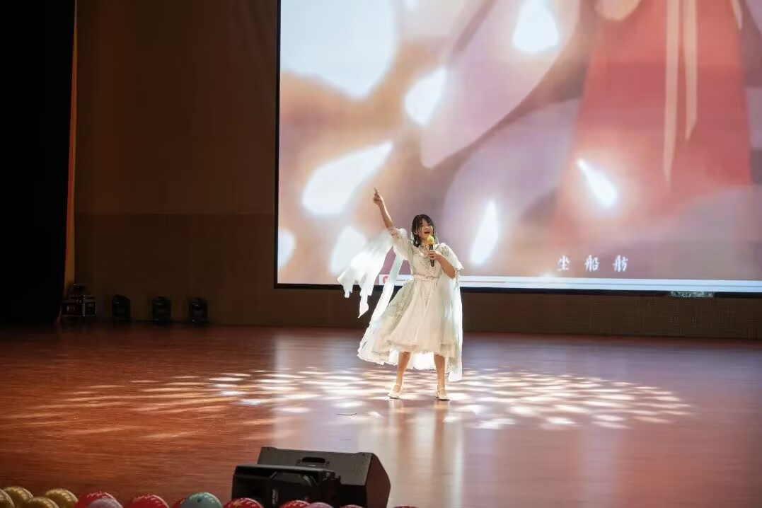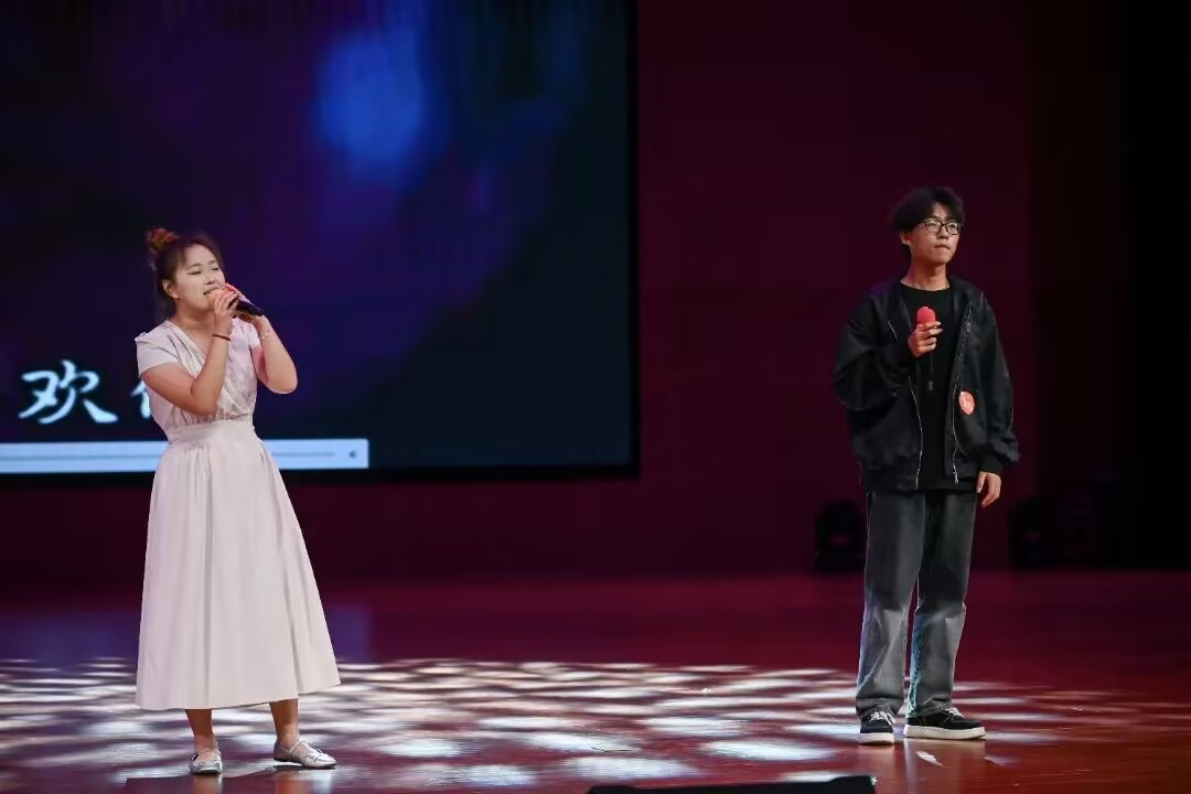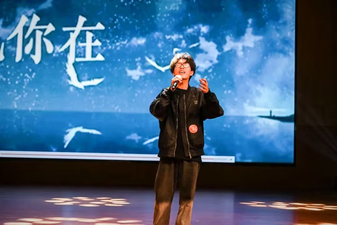大賽邀請到了三位院系聲樂專業背景的教師——李俠、吳嘉玥、張慧敏老師擔任評委。晚上6點10分,隨著大學生藝術團樂隊一曲充滿活力的《我們的時光》震撼開場,大賽正式開啟帷幕。1號選手胡杰以一曲《聽海》驚艷亮相,瞬間點燃了現場氛圍。隨后,8名選手依次登臺,憑借扎實的演唱功底,完美詮釋了一首首涵蓋青春、奮斗、圓夢以及傳統文化等多元主題的曲目,為在場的每一位觀眾帶來了一場視聽盛宴。