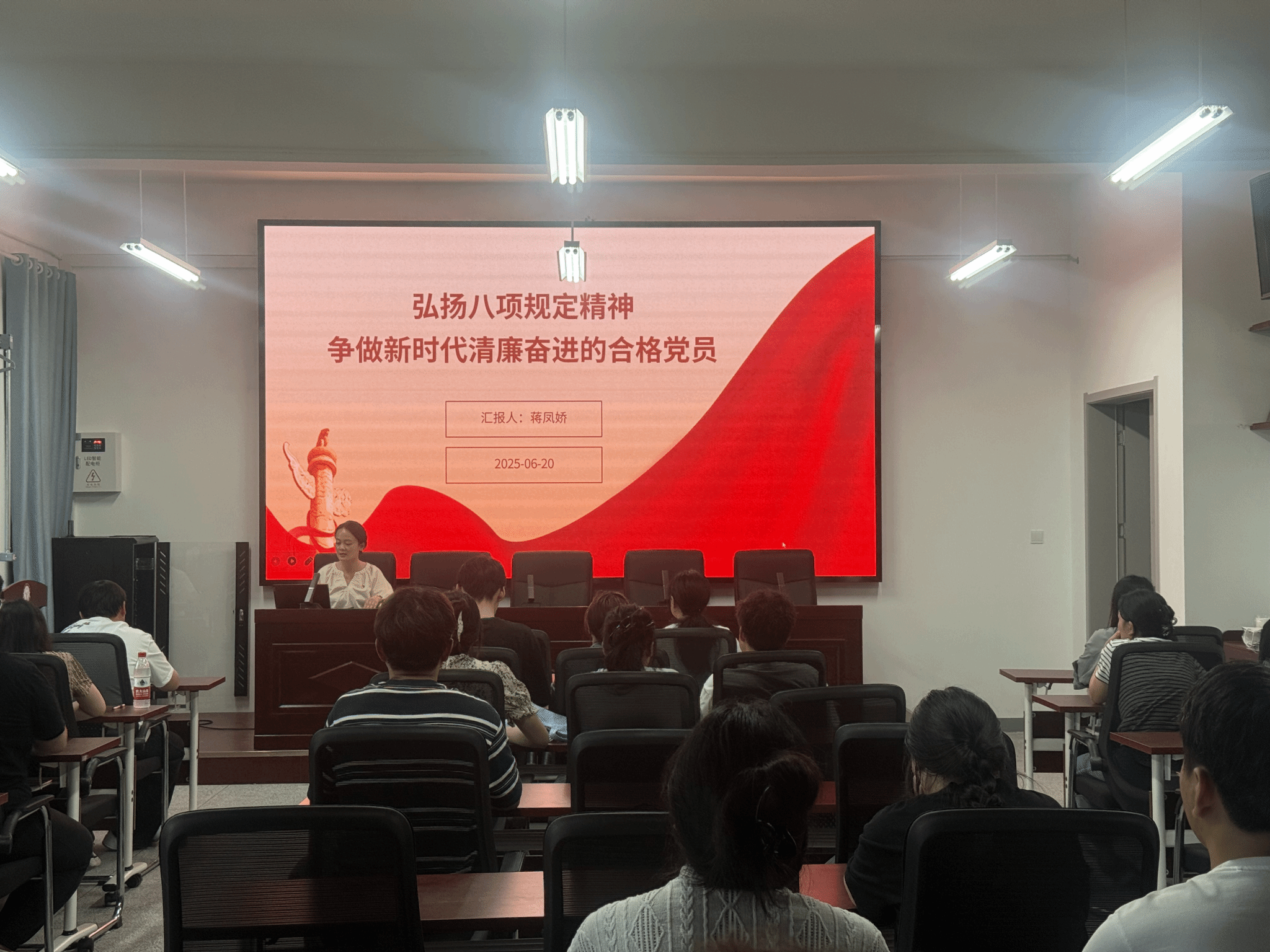 會議最后,蔣鳳嬌圍繞《弘揚八項規定精神,爭做新時代清廉奮進的合格黨員》主題,為全體黨員講授了一堂生動的黨課。