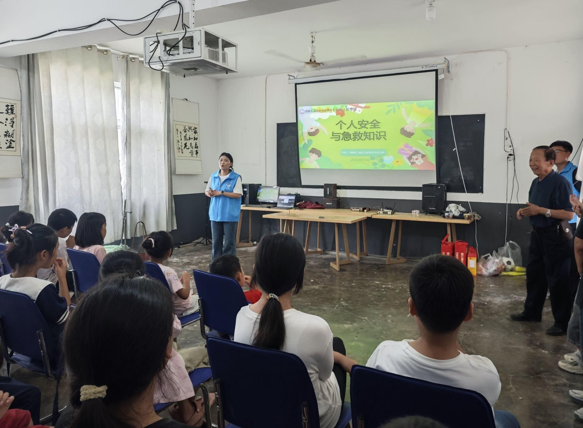 同日下午,針對鄉村兒童安全防護需求,學生們利用專業所學急救知識,精心組織個人安全與急救知識教育專項活動。志愿者以“生命至上,安全先行”為理念,通過播放安全教育專題影片、現場示范救生衣規范穿戴流程、詳解溺水救援“黃金法則”等方式,系統傳授水上安全知識與自救互救技能。安全知識競賽環節中,孩子們踴躍搶答,將所學知識轉化為防護本領,優秀者獲頒榮譽獎品,形成了“學安全、懂安全、守安全”的良好氛圍,有效提升了鄉村兒童的安全防范意識和應急處理能力。