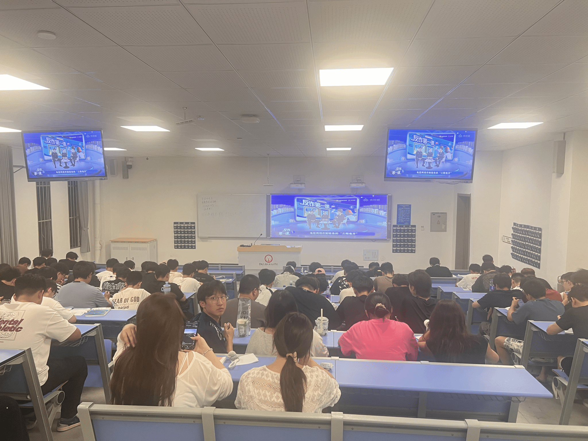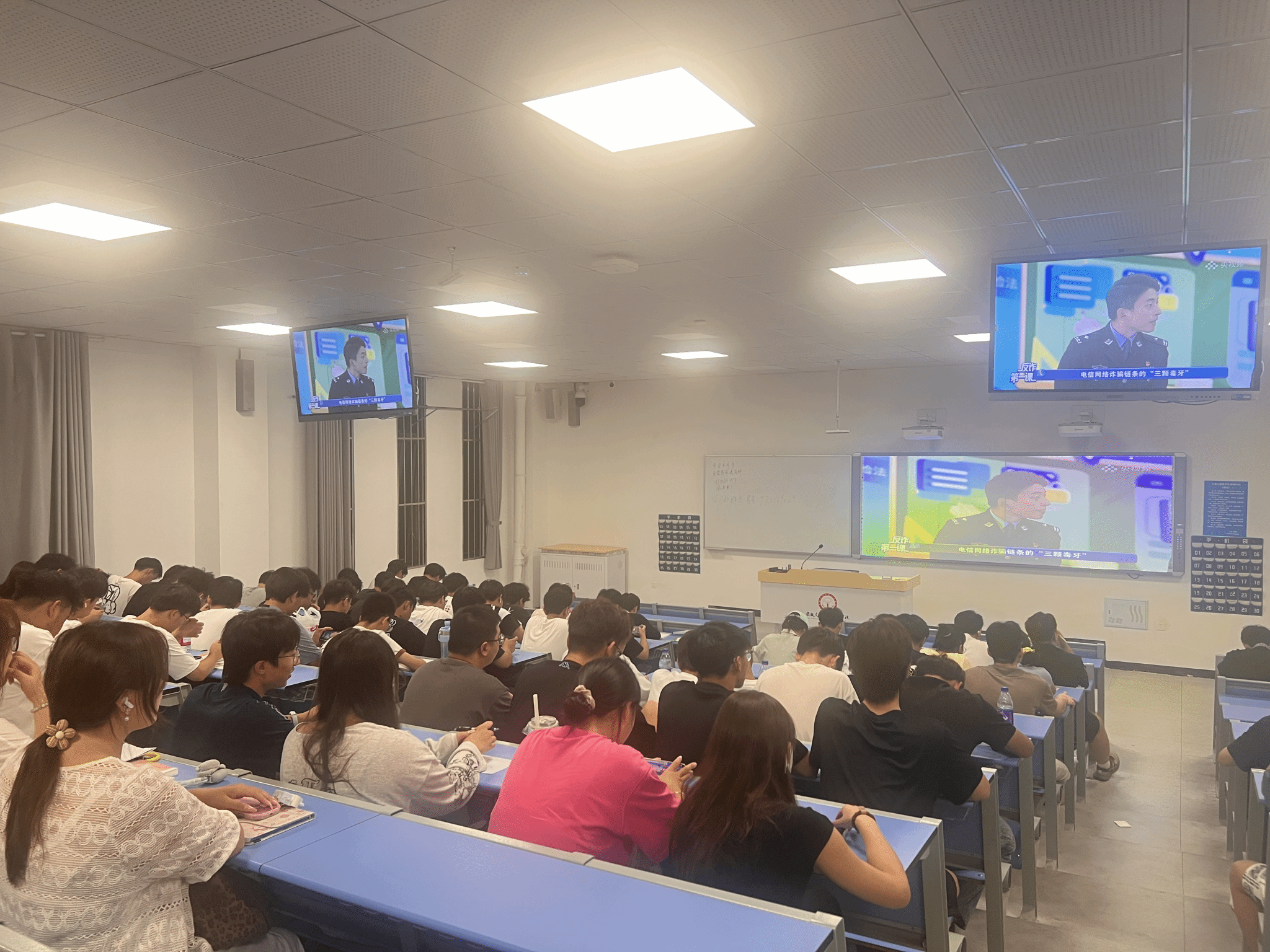 為構建平安校園,提升學生反詐能力,9月16日晚,我校保衛(wèi)處聯(lián)合學生處創(chuàng)新采用“直播+情景劇”形式,在全校班級教室同步開展“反詐第一課”專題教育活動,達到了實現(xiàn)“全覆蓋、強實效”的宣傳目標。