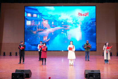 師生同心,溫情滿溢。4位老師與2位同學攜手帶來朗誦《月光下的中國》,以真摯的情感、深情的訴說,勾勒出祖國的壯美與溫柔,喚起全場師生的家國情懷。