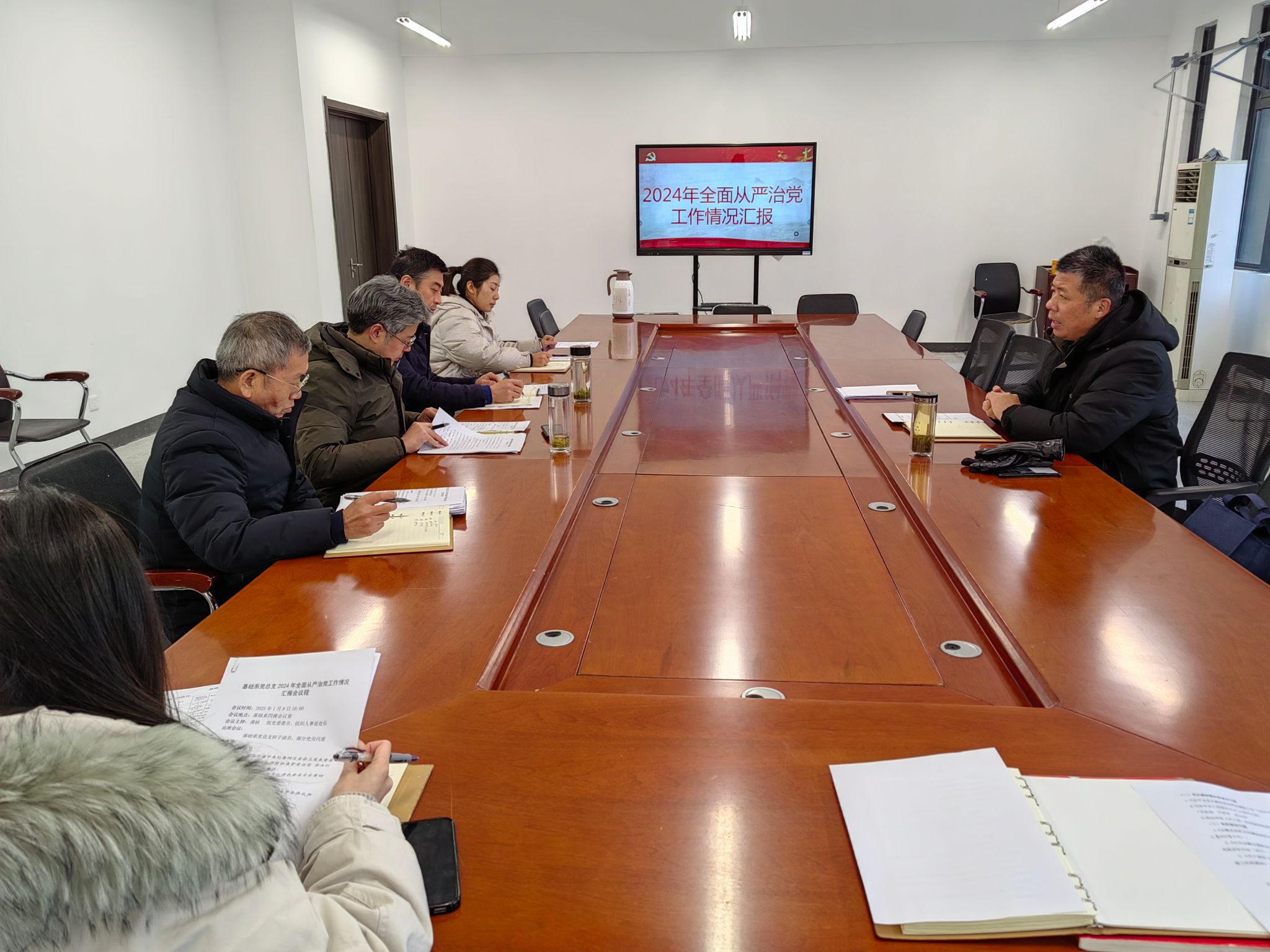 1月9日下午,院黨委委員、組織人事處處長龔楨專題聽取基礎系2024年全面從嚴治黨工作情況匯報。基礎系黨總支班子成員和黨員代表參加會議,龔楨主持會議并講話。