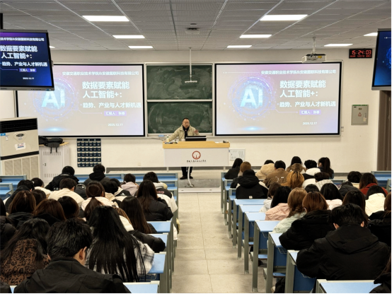 12月17日,圖聯(lián)科技有限公司工程師張春應(yīng)邀為我校2024級、2025級大數(shù)據(jù)專業(yè)學(xué)生開展了“數(shù)據(jù)要素賦能人工智能+”專題講座,學(xué)院副書記、副院長(主持)張峰、大數(shù)據(jù)專業(yè)負責(zé)人出席參加。講座圍繞大數(shù)據(jù)專業(yè)前景、數(shù)據(jù)產(chǎn)業(yè)價值鏈及人工智能時代下的職業(yè)發(fā)展路徑展開深入分享。