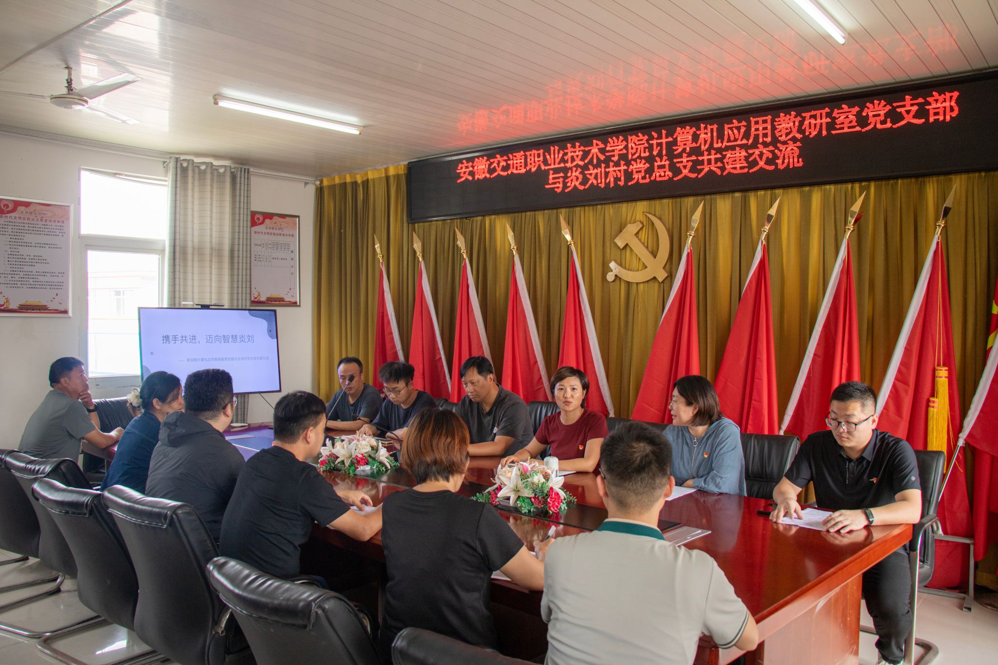 在炎劉村黨群服務中心,一場以 “攜手共進,邁向智慧炎劉” 為主題的黨建聯建座談會熱烈開展。計算機應用教研室黨支部與炎劉村黨總支成員圍坐一堂,圍繞基層黨建創新、鄉村智慧化建設展開交流。“黨建引領聚合力,校地協同破難題”,思想的碰撞中,校地共建的路徑愈發清晰,智慧炎劉的藍圖徐徐鋪展。