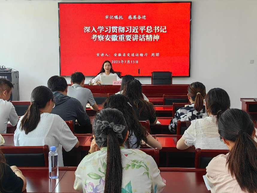 為深入學(xué)習(xí)貫徹習(xí)近平總書記考察安徽重要講話精神和中央八項(xiàng)規(guī)定精神,充分發(fā)揮省直機(jī)關(guān)青年理論宣講骨干作用,省直機(jī)關(guān)工委于近日開展省直機(jī)關(guān)“走基層送理論 重實(shí)踐建新功”青年集中宣講調(diào)研活動(dòng)。學(xué)院青年教師周珺作為省直機(jī)關(guān)青年宣講團(tuán)成員代表省交通運(yùn)輸廳于7月15日赴馬鞍山市博望區(qū)集中理論宣講。
