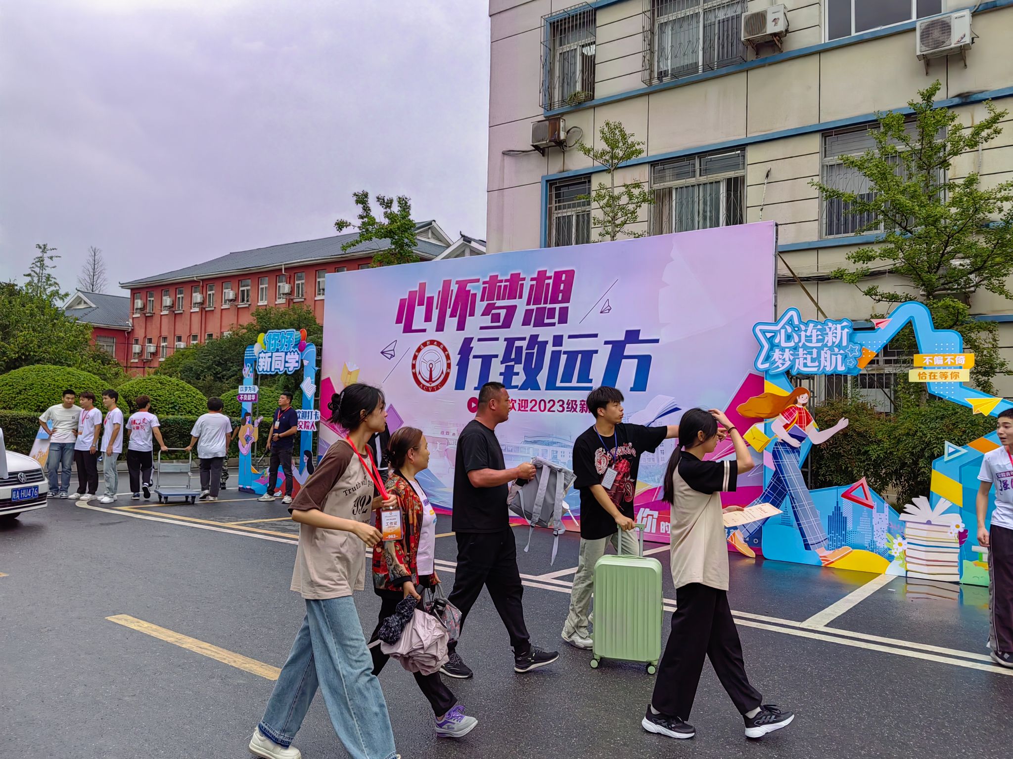全系近百名志愿者和學(xué)生會成員,幫助新生拖運行李,做好答疑引導(dǎo)工作、協(xié)助辦理入學(xué)手續(xù),幫助領(lǐng)取物品、引導(dǎo)入住寢室,老師和學(xué)生的熱情讓第一次離家的學(xué)生感到溫暖。